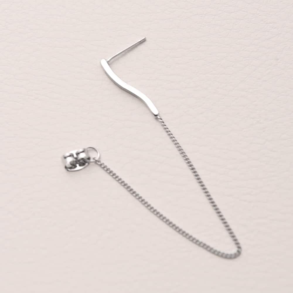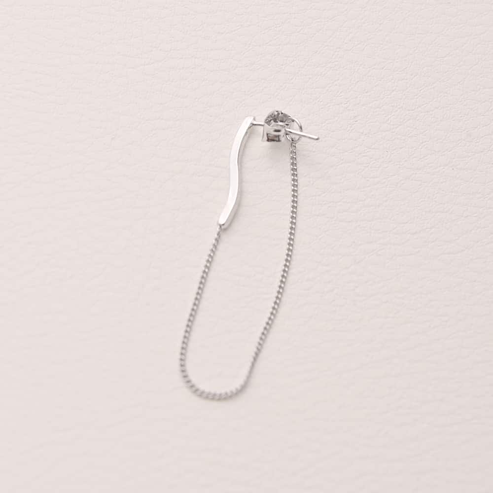 華奢なデザインの中に小ワザが効いている、洗練された『さりげなさ』が素敵なピアス◆12/4インスタライブご紹介商品◆アーカイブのご視聴はこちらから→【12/4ライブ】ライン(線)状の細いメタルがキラリと光る、華奢な感じがさりげなくて素敵なピアス。最下部からはチェーンが下がっており、そのチェーンの先端にキャッチ(針の受け金具)が付いたキャッチ一体型の構造です。耳たぶの前と後ろをチェーンで繋ぐデザインは、どの角度から見てもオシャレな印象。見た目の良さもさることながら、キャッチを無くさないで済む、という嬉しい付随効果もあります。土台となるライン部分は直線ではなく、よく見ると湾曲がかかっている形状。これにより光の当たり方が均一ではなくなり、ニュアンスのある輝きが生まれるという小技も効いています。【お手入れについて】※ピアスは帰宅したら外し、ハンドソープで手を洗うついでに一緒に軽く洗ってしまうのが◎ 付着した皮脂や汗が落ちて酸化を遅らせ、色味やカラーがキレイに保てます。※洗浄は優しく・そっと行うようにしてください。※洗ったあとはティッシュで軽く水気を吸い取り、タオル等の上に置いて自然乾燥させて、乾いたらしまいます。※着用しないときはチャック付きポリ袋などに入れて、なるべく空気に触れさせないことで質感の良さが長持ちします。※入浴時、スポーツ時、就寝時には外してください。質感が劣化し、破損の原因になります。【SNS用ハッシュタグ】#236028前後がチェーンで繋がるピアス(このハッシュタグでInstagramなどSNS内で検索をしますと、こちらをお持ちのお客様のご投稿があれば、簡単に見つけてご覧いただくことができます)