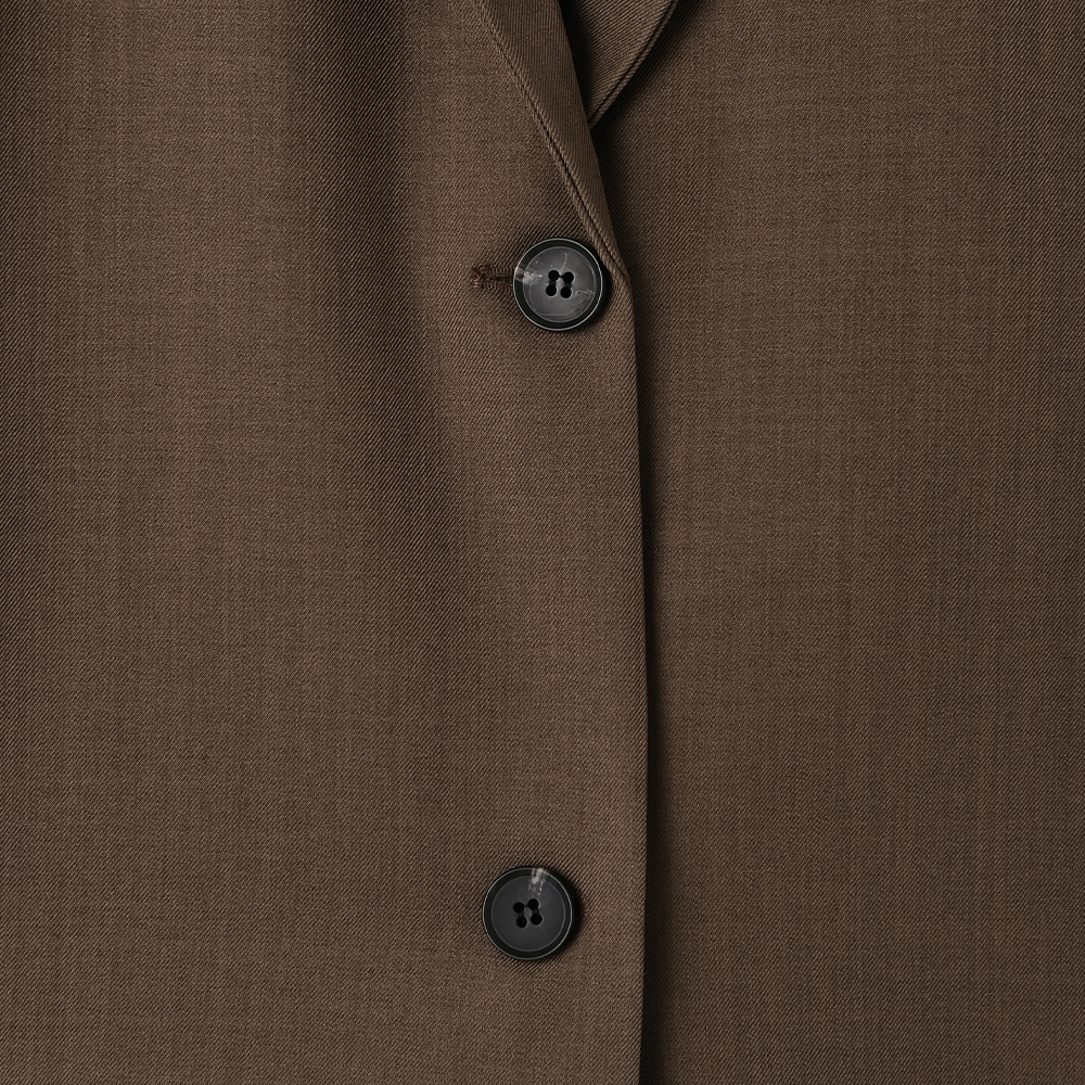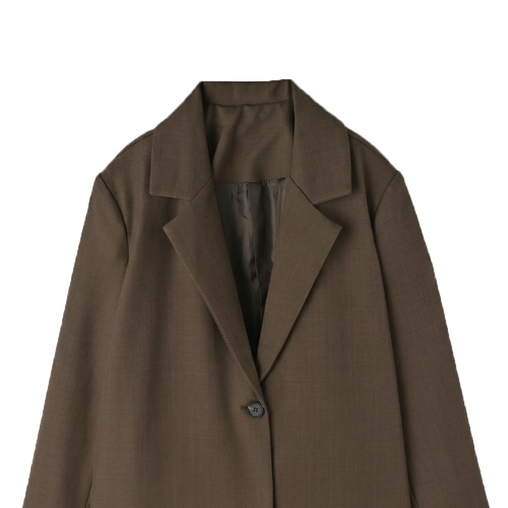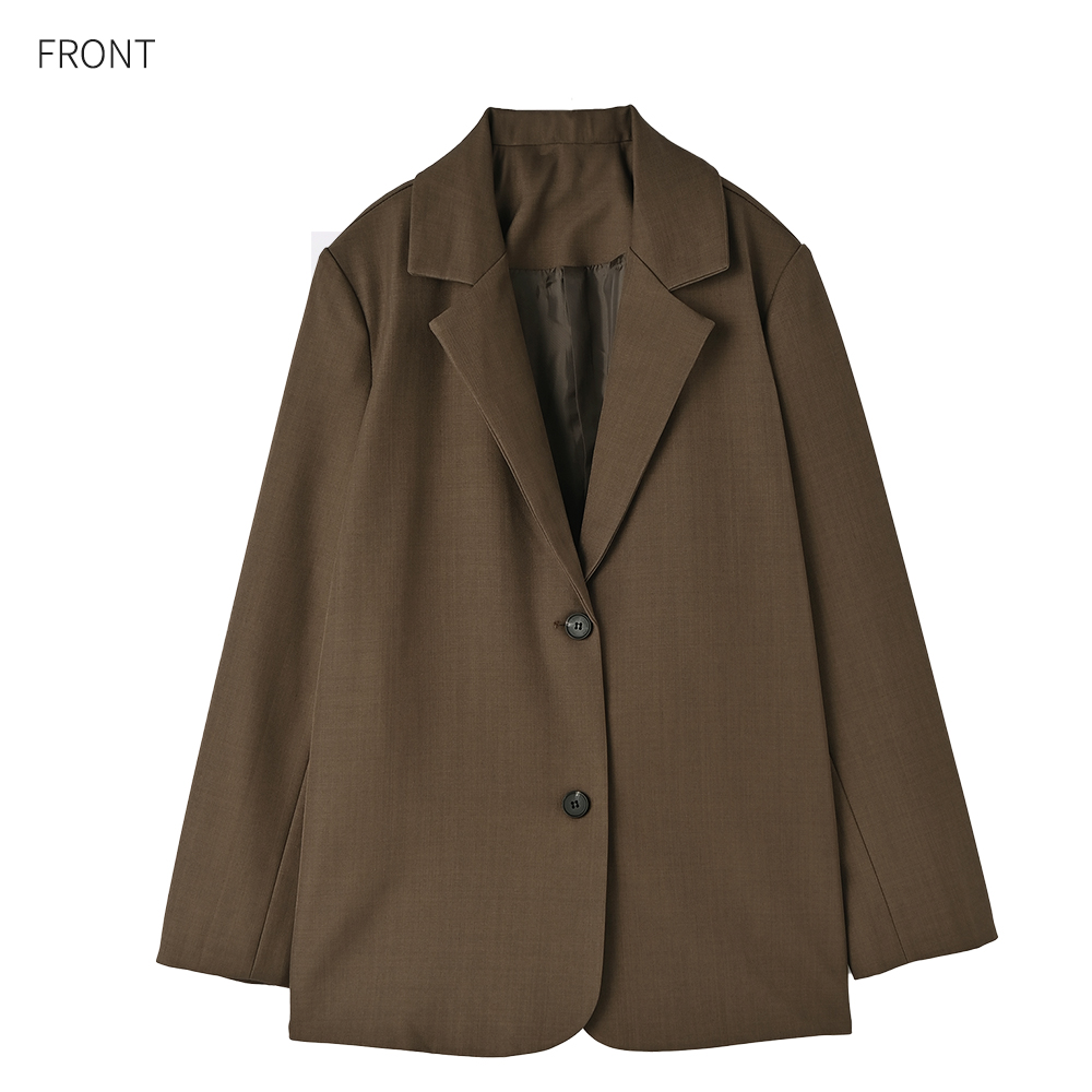 季節を問わずにいつでも使える、少しづつ今っぽいディテールのシンプルなテーラードジャケット◆12/18インスタライブご紹介商品◆【この商品の特徴】スッキリとした生地感のキレイめなスーツ生地を使用した、シングル合わせのテーラードジャケット。シンプルですが少し大きめな襟やゆったりとした身幅、きもち長めの丈感なのにボタンが2つという点や、ボディが完全にストレートラインなところが少しづつ今っぽい感覚のジャケットです。雰囲気的にはとくにクセが無いので、営業職系コーデのようなカッチリ感のある格好にはもちろん、スウェットパンツを合わせたカジュアルなコーデなどにも使用可能。フェミニン度は低く、どちらかといえばカッコいい寄りですがニュートラルの範囲内、という感じです。◆厚みの無いスッキリとした生地で軽量な着心地。◆この上にコートを着てもスッキリとしている生地厚。◆完全にストレート型のボディライン。◆ヒップが隠れる長さがありつつオーバーサイズではない。◆中に中厚地ニットを着れる程度の適度なゆとり感。◆スカート、パンツ、ワンピース合わせは全てOK。◆季節を問わずにいつでも使える生地質感。【さらにプラス情報】◆暖かさ:普通です。とくに暖かさに重きは置いていない通年生地なので、春と秋は外用の羽織りにもなりますが、冬場はこの上にコートを着るようなスッキリとした生地感(ジャケットの中ではやや薄手寄り)です。とはいえやはりジャケットなので、カーディガンよりはぜんぜん暖かさがある感じです。◆肩パッド:ほぼ無いに等しい、とても薄いものが入っています。これが無いとさすがにジャケットとして肩の形状を成さない、という最低限のものになっていますので、肩パッドがお嫌いな方にも安心していただけます(取り外しは不可)。◆手洗い:きちんと成形されたキレイめ生地のジャケットなので、基本的にはクリーニングを推奨しています。ただし最近は何でも洗ってしまうお洗濯上級者の方も多いので、行う場合はネットで検索してやり方を調べるなどして、自己責任でお試しください(トラブルがおきた際は免責とさせていただきますので、予めご理解をお願いいたします)。素材的には洗えない部類のものではありません。◆静電気:とくに発生しやすい生地ではありませんが、程度の差はその方の帯電体質具合や合わせアイテムなどによりますのと、冬場は乾燥でどうしても…というところはありますので、もしも気になる場合はエレガードなどの静電気防止スプレー等でご対処ください。◆シワや毛羽立ち:できやすい生地ではありません。【ほか商品との比較】対象商品:『かすれ織りテーラードジャケット(商品番号236009)』◆生地厚:あちらの方が厚いです。◆ゆったり感:こちらの方が少しゆったりとしています。◆丈感:こちらの方が長いです。◆その他:あちらの生地は織り方が凝っていますが、こちらは一般的な感じのジャケット生地です。◆使い分け:とくに無く、色合いやサイズ感、生地厚やポケットの感じ(細かなデザイン)などのお好みになります。【その他の仕様などの情報】◆着用時期:10-4月頃が目安◆サイズ感:ゆとりのあるサイズ感(Lサイズ体型にも対応)◆丈感:前は太もも上部にかかる丈感/背面はヒップが隠れる程度の長さ◆シルエット:ストレート◆首元:テーラード◆肩幅:普通◆アームホール:普通(とくに狭くも広くもない一般的な開き加減)◆袖幅:やや広め◆袖丈:長袖(手の甲が半分隠れる長さ)◆袖口:何も無し◆袖のたくし上げ:可能◆厚み:普通-やや薄手◆柔らかさ:ハリ感の中にしなやかさが共存◆肌触り:サラサラとして滑りが良い感じ◆着用ジワ:できにくい◆毛羽立ち:できにくい◆伸縮性:ややあり◆光沢感:ほぼ無し◆透け感:なし◆スリット:なし◆着脱:フロントボタン開き◆ボタン:スミクロ系の控えめなマーブル模様(ツヤ消し)◆ポケット:両サイドにあり◆裏地:あり◆手洗い:一応不可◆袖丈直し:お直しに出していただけます◆アイロン:不要◆スチーマー:使用OK【お色について】◆ブラック:定番的な通常のブラックです。◆グレー:僅かに明度のズレた2色のグレーを使い、織り柄を出した生地。明るくも暗くもない中間的なミドルグレーです。◆カーキブラウン:カーキ色の中に明るめのブラウン色素を混ぜ、グリーン味を抑えめにすることでジャケットに向く色にした特殊なカーキ色。印象としてはカーキ色のほうが強く、カーキ65%、ブラウン35%という感じです。微々たるグリーン味があります。【SNS用ハッシュタグ】#236061スッキリ2ボタンテーラードジャケット(このハッシュタグでInstagramなどSNS内で検索をしますと、こちらをお持ちのお客様のご投稿があれば、簡単に見つけてご覧いただくことができます)