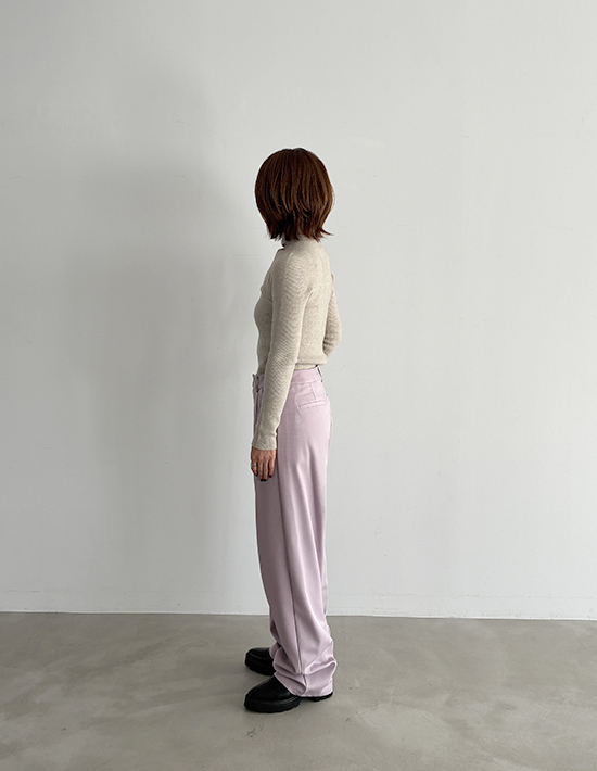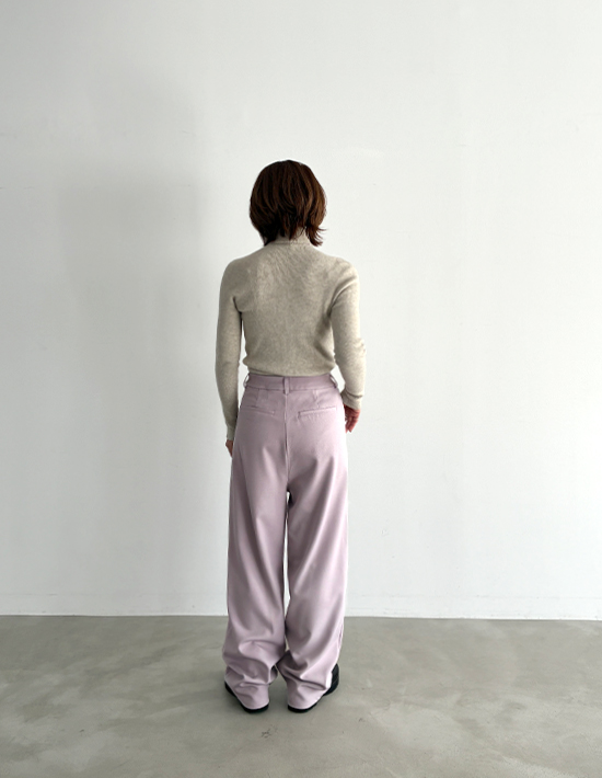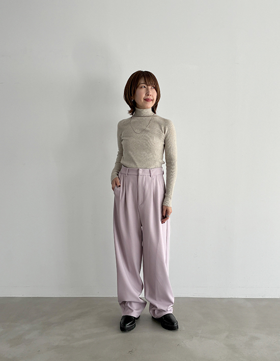 太過ぎないシンプル系ストレートライン伸縮と裏地ありの冬も穿きやすいパンツ◆12/18インスタライブご紹介商品◆アーカイブのご視聴はこちらから→【2025/12/18ライブ】【このパンツの特徴】ワイド過ぎない幅でシンプルなストレートラインに仕上げた、シングルタックのワイドパンツ。スルスル系の生地ではなく程よくハリ感のある、体型・肉感カバー効果が高い生地を使用しています。適度なしっかり感に加えて裏地もあるため、真冬の着用も快適なのが特徴。生地・裏地ともにストレッチ入りで動きやすいのも嬉しいポイントです。◆仕事コーデにも使いやすい自然なワイド感◆暖かさのある穿き心地◆ハリ感のある生地がお好きな方に◎◆ウエストにゴム無しでスタイリッシュ◆センターライン無しのシンプルデザイン◆キレイめにもカジュアルにも使用可能◆春先まで使いやすい軽さのある色味【その他の仕様などの情報】◆着用時期:10-5月頃が目安◆サイズ感:きもちゆとりのあるサイズ感◆丈感:少し長め◆シルエット:幅太過ぎないストレート◆ウエスト:ゴムなし◆ベルトループ:あり◆厚み:しっかりめ◆柔らかさ:ハリ感の中にしなやかさが共存◆肌触り:サラッと肌離れが良い感じ◆着用ジワ:できにくい◆毛羽立ち:できにくい◆伸縮性:あり◆光沢感:なし◆透け感:なし◆スリット:なし◆着脱:フロントファスナー&上部ホック◆ポケット:両サイドにあり ◆ヒップポケット:飾り(使用は不可)◆裏地:あり◆手洗い:可能◆裾上げ:お直しに出していただけます◆アイロン:不要◆スチーマー:使用OK【さらにプラス情報】◆ウエストサイズ:いつもの当店の表記サイズよりも若干のゆとりを入れた、ニットなども裾インしやすいサイズ感。少しだけ緩い感じを、ベルトで締めて着用するのが基本的なイメージです。◆静電気:とくに発生しやすい生地ではありませんが、程度の差はその方の帯電体質具合や合わせアイテムなどによりますが、冬場は乾燥でどうしても…というところはありますので、もしも気になる場合はエレガードなどの静電気防止スプレー等でご対処ください。【お色について】◆ラベンダー:パープル感が控えめで、僅かにピンク味のあるタイプ。彩度も抑えめのアッサリとした大人っぽい発色です。◆グレー:チャコールグレーよりは明るさがある、程よい深みのグレーです。◆アイボリー:真っ白よりも少し深みがある、馴染みの良いホワイト。イエロー味や赤味などの色味感はありません。【SNS用ハッシュタグ】#236081裏地付きストレッチツイルワイドパンツ(このハッシュタグでInstagramなどSNS内で検索をしますと、こちらをお持ちのお客様のご投稿があれば、簡単に見つけてご覧いただくことができます)