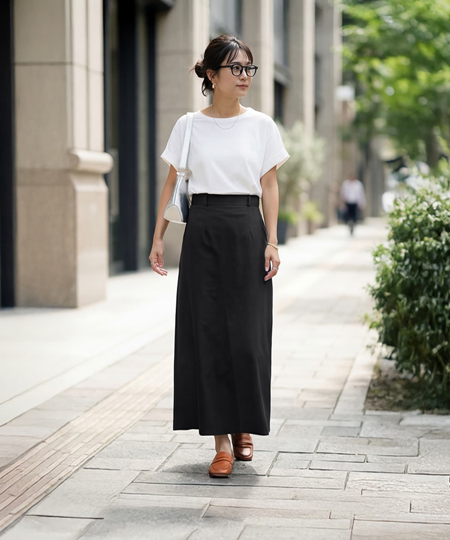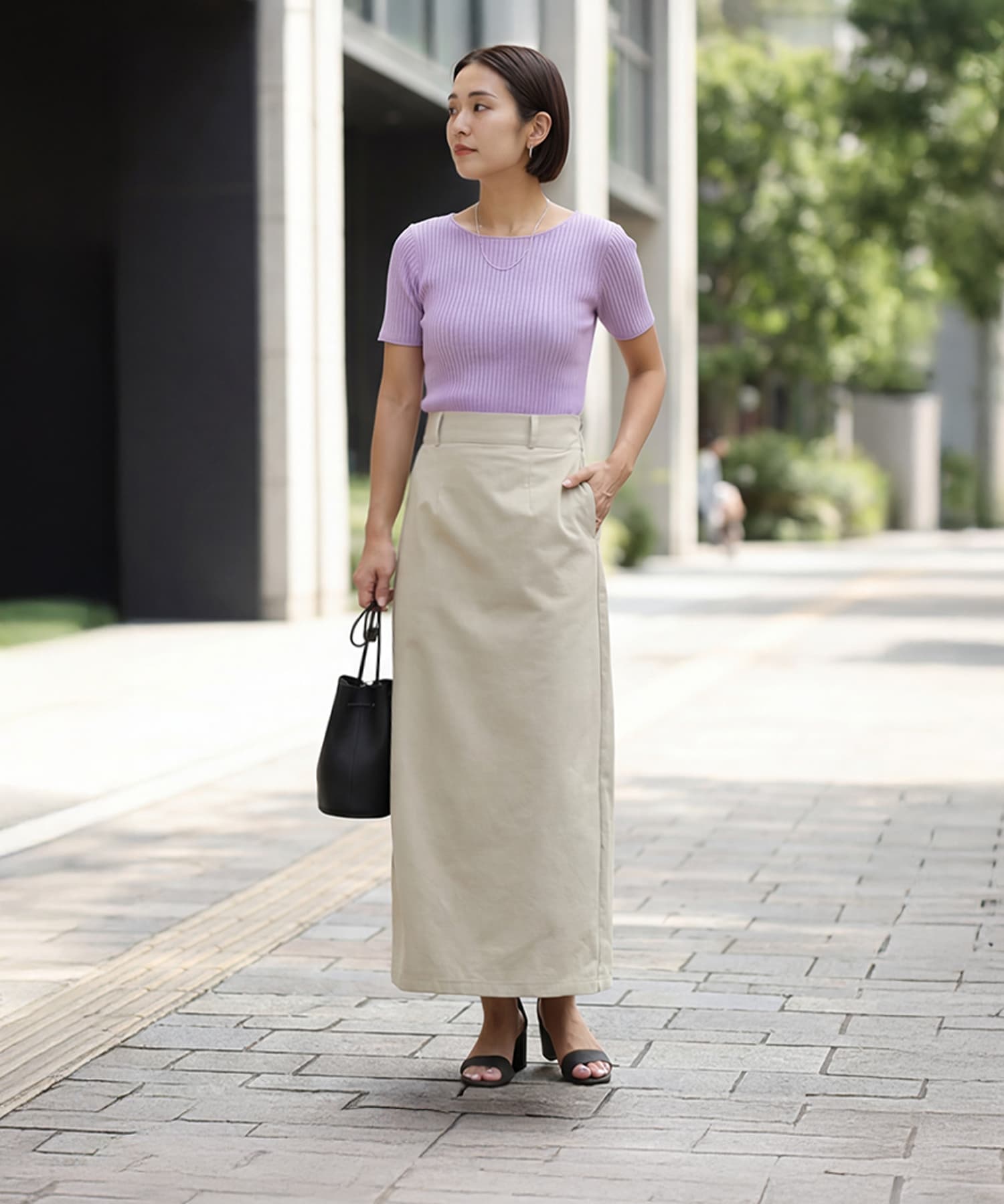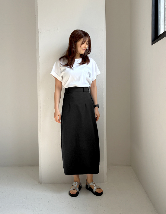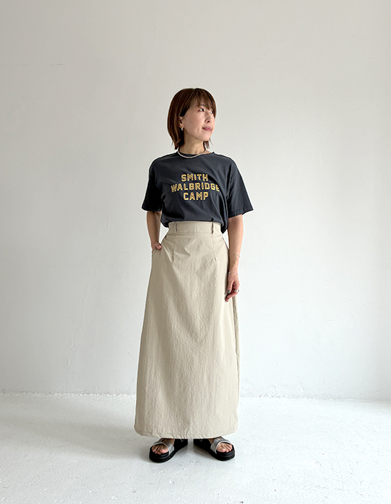 その質感と形が相成り、こなれた中に品の良さと大人っぽさを持つのが特徴。穿き心地は軽くて涼しく、真夏でも快適に過ごせる爽やかなスカートです。