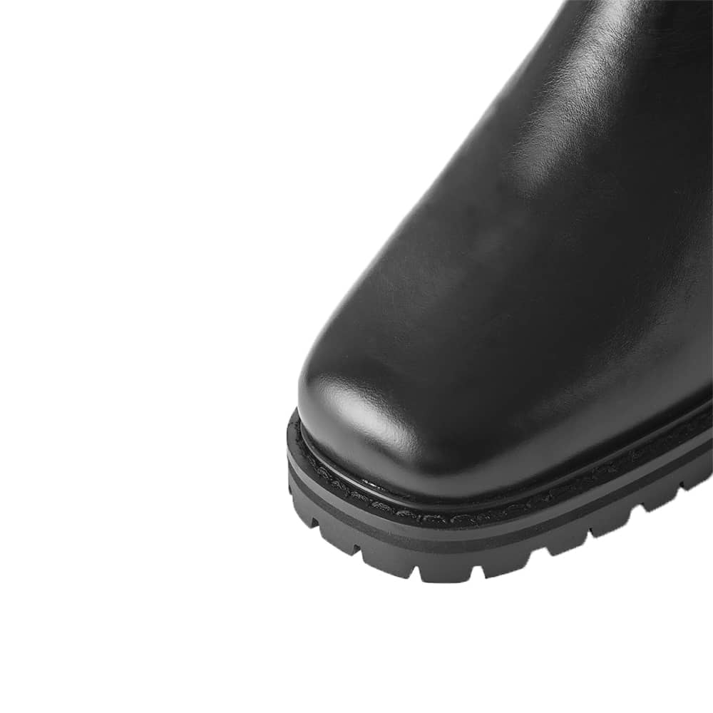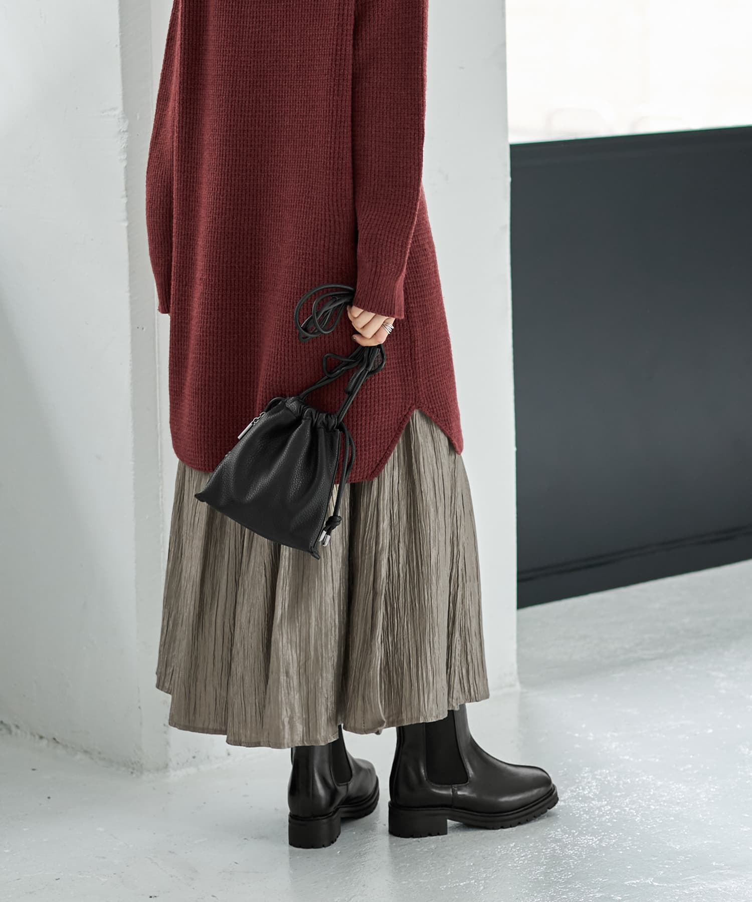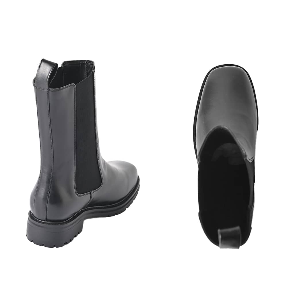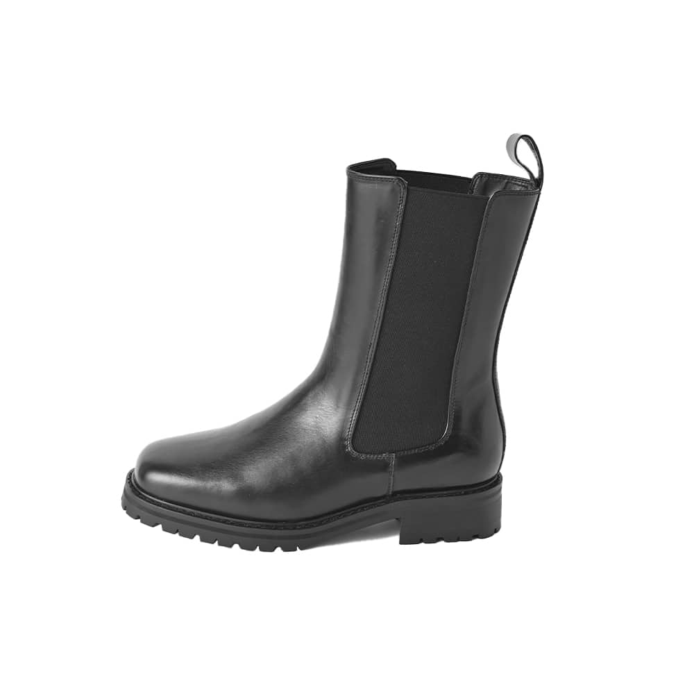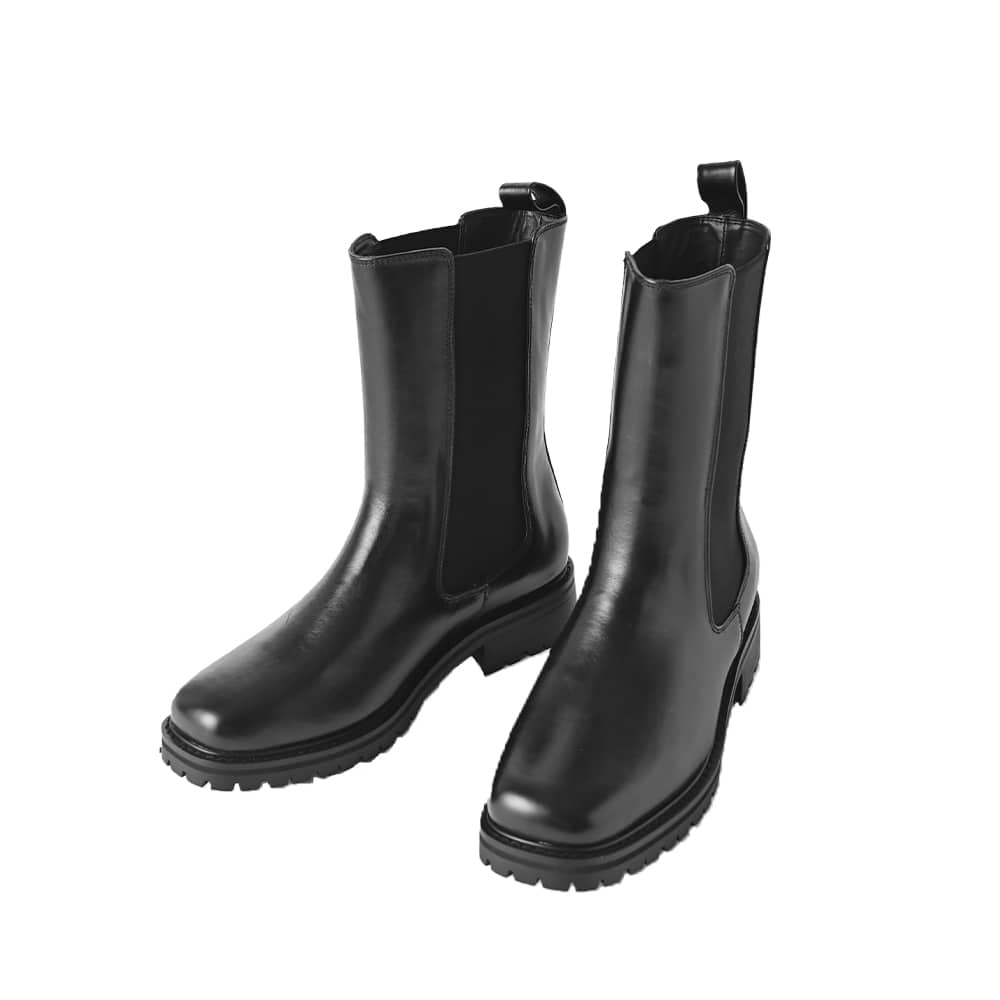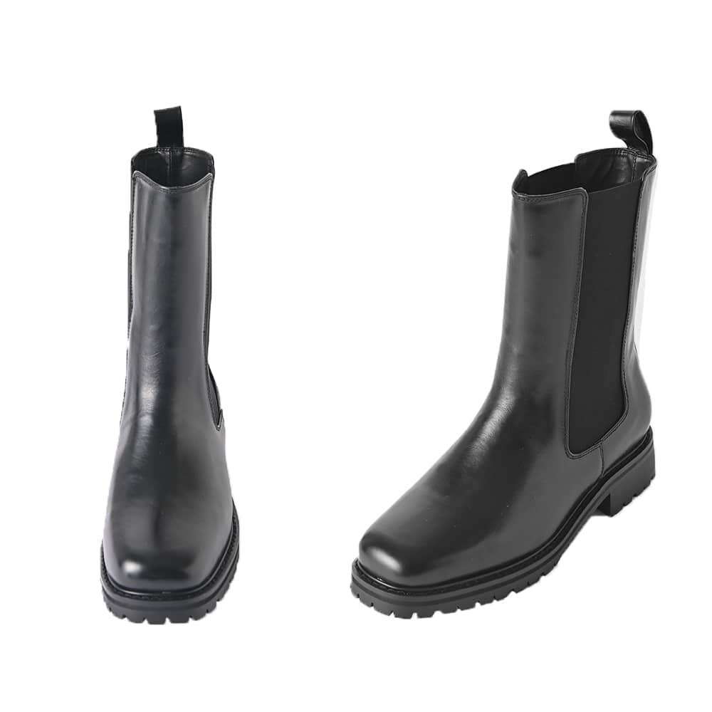 本革ならではのリュクスな質感が美しい、長めなミドル丈のサイドゴアブーツ。少し丈が短いかなと感じるスカートやワンピース、クロップド丈のパンツを穿く際にはとくに活躍する、ふくらはぎ近くまで隠れる丈感のブーツです。