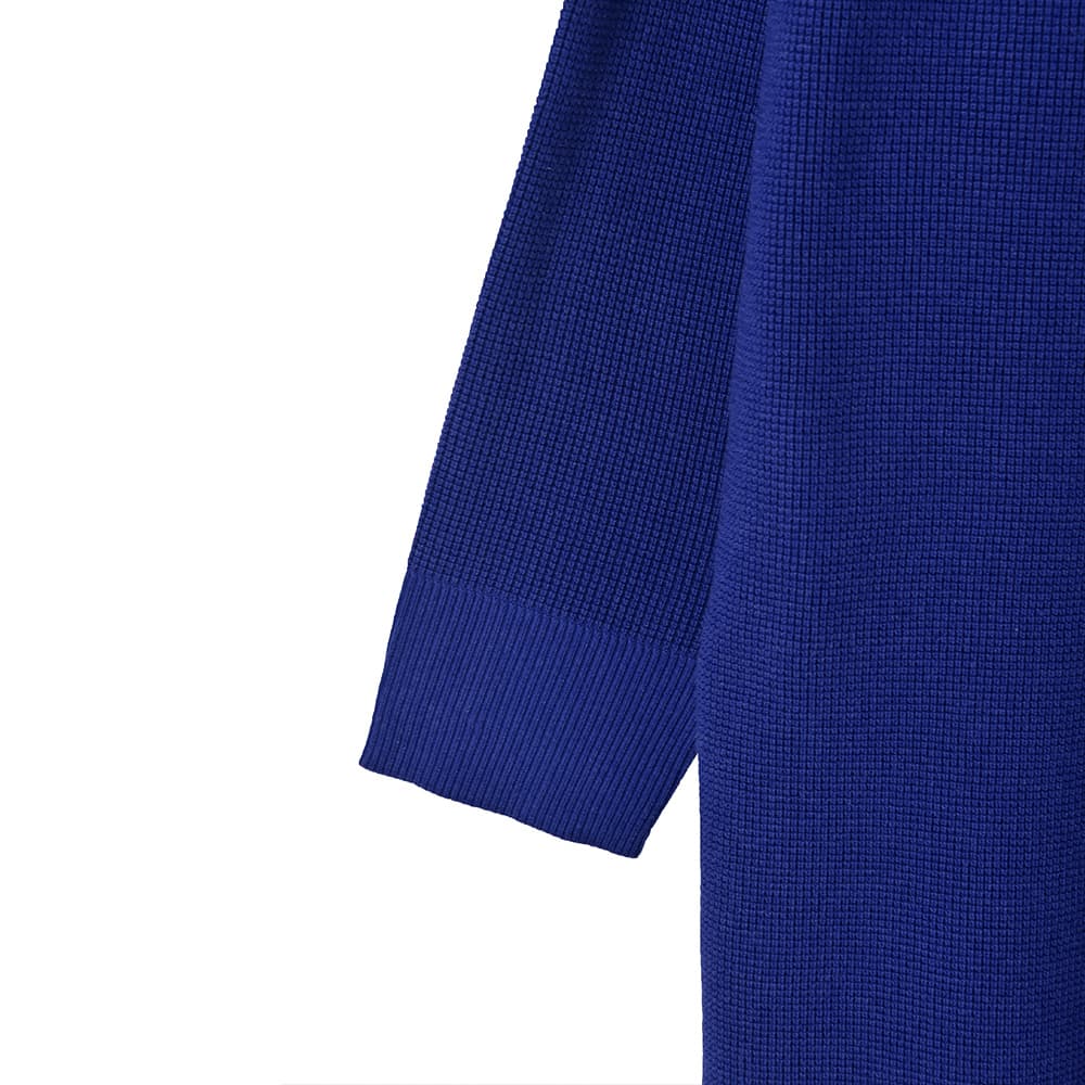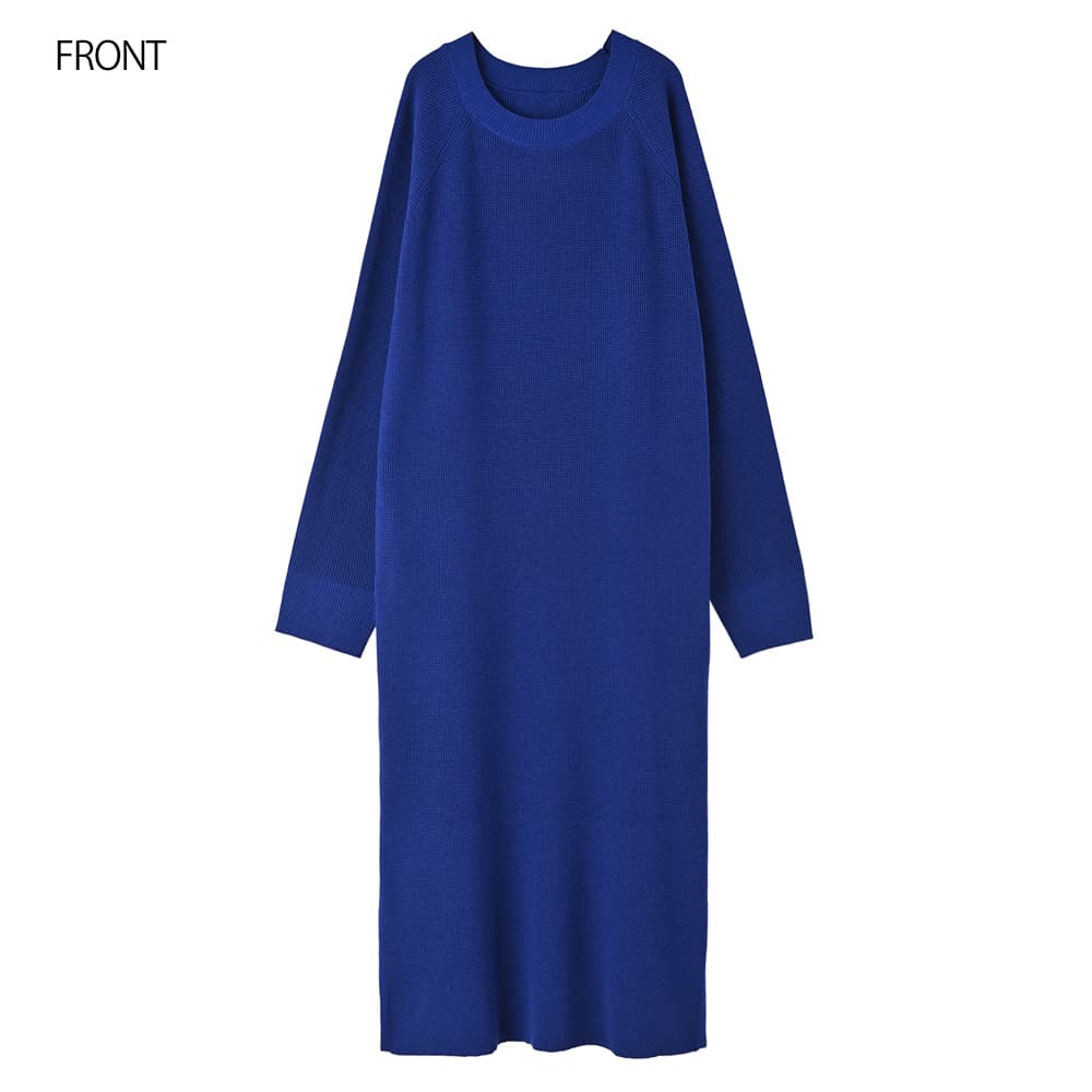 ほど良くキレイめ、ほど良くカジュアルニットをサーマルカットソーに近付けた、質感を楽しむラクちんシンプルワンピース【この商品の特徴】◆サーマルカットソーの質感をニットで表現◆カットソーよりも品のある雰囲気になる大人仕様◆表面凹凸のあるカワイイ編み地◆サラッとして軽くラクな着心地◆どのような丈感で着ても素敵なワンピース◆顔周りがスッキリと見える特殊クルーネック◆カジュアル過ぎないヌケ感のあるデザイン◆ポケットで腹部や腰周りをカバー◆スニーカー合わせもカワイイ◆同じ素材でVネックタイプもあり【この商品の詳細】サーマル編みならではの可愛さをニットで表現すべく、工夫を凝らした春夏素材ワンピース。何故ニットかというと、カットソーの場合は質感がカジュアルに寄るため大人にとっては人やシーンを選ぶ傾向にあり、それを解決するのにキレイめ感を両立させたかったからです。結果、キレイめ感がありつつほど良くカジュアルで、今の気分にピッタリな大人のワンピースが完成。シンプルなので小物次第でキレイめ寄りにしたり、カジュアル感を強めたりと雰囲気が調節できます。◆サイズ感:適度にゆったりとしており、ヒップラインなどが目立たないゆとりを付けています。ゆとりが足りない場合は生地を横方向にグイグイと引っ張り、編み目の詰まり感を緩めるとゆとりがプラスされます。※引っ張った後は返品・交換の対象外となりますので、ご使用が決定してから行うようにしてください。◆丈感:着用すると重力により、平置き寸法よりも5cm程度長くなります。ニットなので若干の個体差があり、体型によっても差が出ますが、基本的には着丈125-127cm程度の着用感になります。普通身長の場合、ふくらはぎが完全に隠れて足首が出るような丈感です。◆厚み:ニットとしての厚み自体はやや薄手寄り。表面に凹凸を付けて編んでいるため、実際の厚みよりもしっかりと感じるような編み地です。◆肌触り:サラッとしていて肌離れが良く、着心地はサッパリとして気持ちが良いと思います。カラッと乾いている系ではなく、適度な柔らかさもある優しい肌触りです。◆比較:姉妹商品のVネックタイプの方が、こちらよりキレイめ感があります。サイズ感等は同じですので、雰囲気やデザインのお好みでお選びください。【デザインの補足事項】◆首元:通常はカジュアル感が出て『似合わない現象』を生みがちな首元リブも、特殊な形状と質感で難なくクリア。糸の細さを利用した薄くスッキリとした襟ぐりで厚みが出ず、逆に良い効果を生みます。適度な開き感もあるため首や顔がシュッとして見え、髪の毛を下ろしていても重たくなりません。◆裾スリット:両サイドにヌケ感を作ることで、視覚的な軽さによる着痩せ効果をプラス。抵抗が無ければ素脚を見せるとオシャレですし、隠したい場合はレギンスなどを合わせても良いと思います。【着方のポイント】このワンピースは両サイドのポケットにボリュームを出すことで、生地を浮かせて腹部や腰周りをカバーする効果があります。お届け時は編み目が詰まっていますので、ポケットが出っ張り気味に見えます。ご使用が決定しましたらポケットの上下部分の生地をグイグイと横に引っ張り、編み目を緩めてポケット部分と高さ(=出っ張り具合)を揃えてください。それでもポケットの出っ張りが過剰な場合は、ポケット部分をスチーマーやアイロン(当て布使用)で潰すようにしてください。多少は盛り上がっている状態が正解で、その方が離れて全身で見た際、ウエストがくびれて全体のバランスが良く見えます。さらにそこが出ていることで、腰張りもナチュラルにカバーしてくれます。ポケットに手を入れて動かしていると、形がどんどん馴染んでいきます。【さらにプラス情報】◆季節感:春夏用素材ですが見た目はとくに季節感を問わず、ご自身の体感温度にマッチすればいつでもご使用いただけます。◆暖かさ:しっかりとしたカットソー素材のワンピースと同程度(基本的に真冬には寒い感じ)です。◆丈伸び:ハンガーに掛けておけば多少は伸びると思います。◆重ね着:首開きの詰まり感がないため、下に首詰まり型のクルーネックカットソーなどを着て『首元からチラ見せ』コーデをすることもできます。◆ボトムスの重ね着:スリットがあるので、お似合いになればお好みでワイドパンツやロングスカートを重ねてみるのもいいかもしれません。そのバランスが良いか悪いかはその方の個性に左右されますので、ご自身でご判断いただければと思います。◆羽織り:一枚で着ることを想定したゆったり感ですが、雰囲気が合えばお好みでジャケットなどを重ねてもいいので、お好きに合わせてみてください。アウター系はなんでも羽織れますので、一枚で着るのに抵抗がある場合は、一案として室内OKの薄手のブルゾンやシャツ型ジャケットなど、どこかアウター味のあるものを着ても素敵だと思います。◆