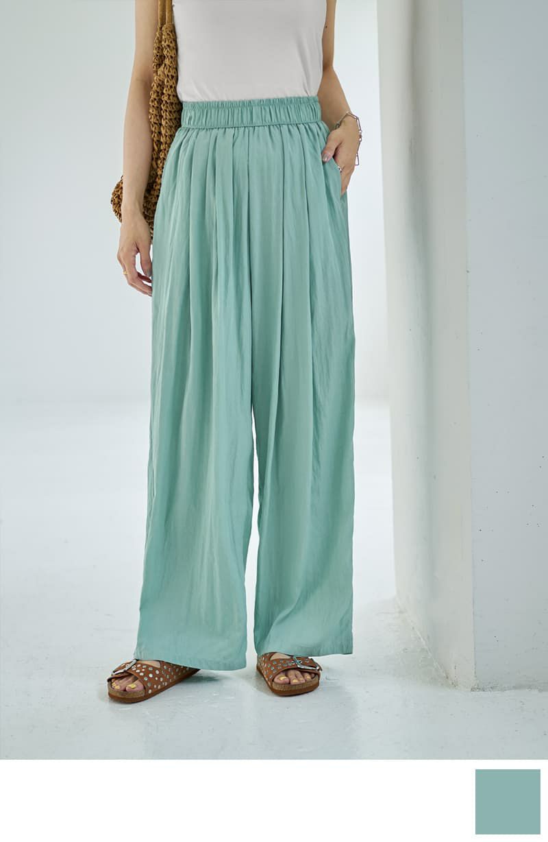 【OUTLET】微光沢シボ感ギャザーワイドパンツ