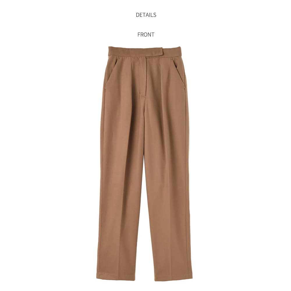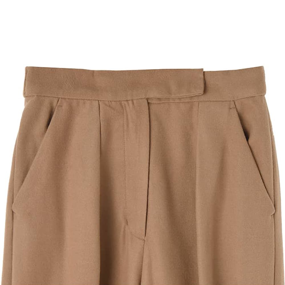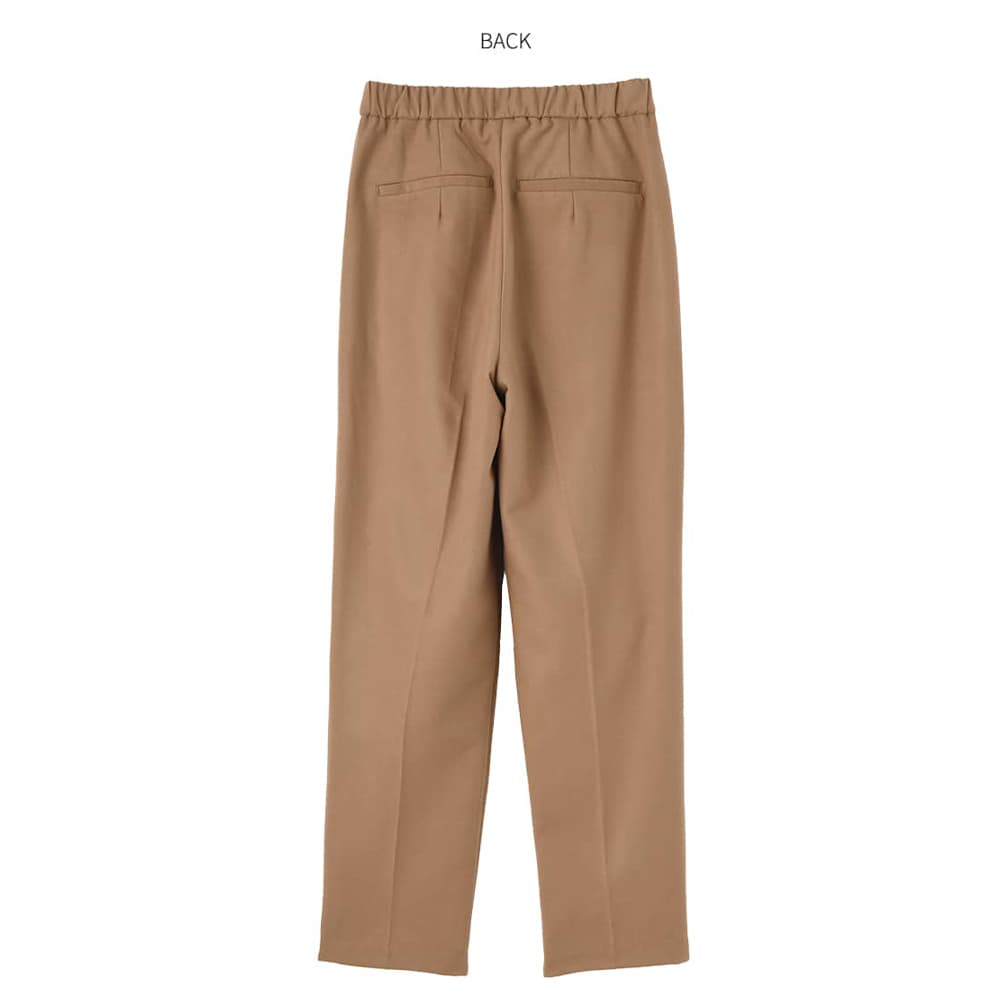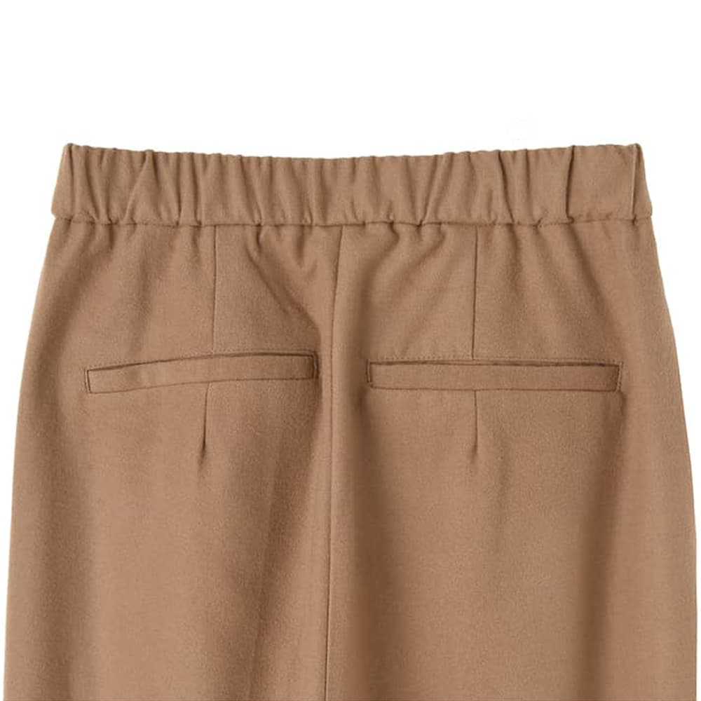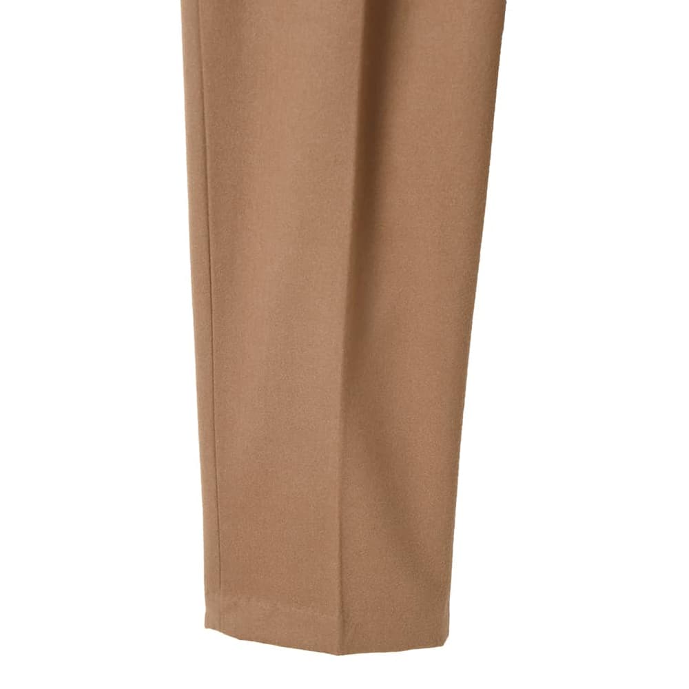 【不良品以外の返品・交換不可商品となります】単品使いもモチロンOK-ファッション性のある非キャリア系-おしゃれなセットアップが作れるシリーズウールライクな暖か厚生地を使用した、季節感たっぷりな質感が素敵なゆったりテーパードパンツ。キャメルとチャコールグレーに関しては、同シリーズのジャケットと合わせてオシャレなセットアップが作れます。テーパードの中でも脚のラインはゆったりめなフォルムでスタイルを問わず、スニーカー合わせなどのカジュアル寄りにもコーデが可能な気取りのないデザイン。しっかりとした暖かい生地で、真冬でも強い味方となるパンツです。※シリーズの中で、ピンクはこちらのパンツだけでのみお作りしています。◆プラス情報◆そのままでも十分に暖かいパンツですが、中に滑りの良い裏地付きで、タイツやストッキングを穿きたい方にも使いやすいタイプです。【デザインや仕様について】◆ウールライクな厚生地を使用したテーパードパンツ。◆やや太めなシルエットで気負わずに穿けるカタチ。◆シリーズのジャケットとセットアップが作れるアイテム(※ピンクは除く)。◆フロントにタックを入れた立体的なデザイン。◆ごく定番的なフルレングス丈感。お好みで裾上げもOKな裾仕様。◆センタープレス入り。◆ウエスト背面ゴム仕様。◆真冬も快適な暖かい穿き心地。◆両サイドにポケットあり◆ヒップ部分に飾りポケットあり(使用不可)◆裏地あり【丈感について】モデル(166cm)が穿いてもフルレングスですが、身長163cmのスタッフ、身長157cm程度のスタッフ達が穿いても、問題なく穿けるパターンになっています。もっと小柄な方には裾上げが必要な場合も想定できますが、大体の方はそのまま普通にお使いいただけます。【生地について】フェルトに近いような感じの、冬っぽい質感がオシャレな生地。アウターにも使用される生地で、厚みもしっかりとしています(すごくぶ厚いわけではありません)。◆含有率が低いため『ウールライク』と表現しておりますが、実際に10%のウールが入ったお素材です。◆とくに毛羽立ちやすい生地ではありません。◆とくにシワになりやすい生地ではありません。◆伸縮性:なし(十分にゆとりがあり、動きづらさはとくに感じません)◆光沢感:なし◆透け感:なし【お色について】◆キャメル:濃いキャラメルのようなこっくりカラー。強くない程度にほんのりと赤味のあるタイプのキャメルです。◆チャコールグレー:ダークグレーよりもさらに深いグレーです。◆ピンク:くすみ感などは一切入れていない、明るい印象のピンク。ハッキリとしつつも強くはなく、気分が明るくなるような楽しい印象の発色です。ローズ感やパープル感などは一切ない、純粋なピンク系統のお色です。【お手入れについて】※こちらはアウターライクなオシャレ生地を使用しているためクリーニング商品となります。※スタッフでも手洗いをする生地ではありませんが、こういった生地の場合はよほど汚れなければ洗わないのが一般的で、シーズン中に1回&シーズンオフに1回クリーニングに出す程度で十分です。※日常的な消臭・殺菌等のお手入れにはスチーマーのご使用がお薦めです。※お洗濯やお手入れは自己責任でお願いいたします。お手入れにまつわるトラブルが生じましても、ご返品・ご交換・ご返金の対象外となりますので予めご了承くださいますようお願いいたします。仮に『書いてある通りにやった』ということでも、恐れ入りますがその事実確認が困難なことから保障はできかねます為、免責とさせていただきます。通常販売価格:9,900円【販売理由:販売終了商品】【お客様へのお願い】メルカリ等、個人および法人販売サイトにおける転売目的でのご購入は、ご遠慮いただきますようお願いいたします。