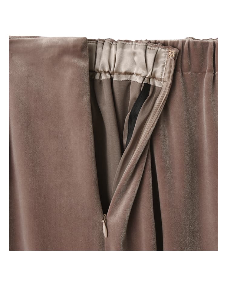 【不良品以外の返品・交換不可商品となります】素材の良さがオシャレさを格上げ。ラクちん・暖か・細見えペンシルスカート。日本製ならではの縫製と生地質感が美しい、ベロア生地のペンシルスカート。ピチピチとしないゆとりのあるサイズ感で、ストレッチも効いているため気負わずに穿くことができます。こちらの生地は抜群の穿き心地の良さで大好評をいただいていた【Made in JAPAN】ベロアリラックスタックパンツと同じ生地を使用しており、その生地のオシャレさも良さもお墨付き。ヘンにレトロ感が出たりパーティー感が出たりする古風なベロアではなく、日常使いに素敵な厳選質感のものを使用しています。ベロア生地は保温性も高く、厚みがそれほど無くても暖かく穿けるため、春先まで快適に使うことができます。【デザインや仕様について】◆適度にゆとりのある穿きやすいペンシルスカート。◆シンプルながらも素材の風合いにより雰囲気が出て、オシャレな印象を与える一枚。◆カジュアルにもキレイめにも使える着回し力の高いデザイン。スニーカーとの相性も◎◆よく伸びて動きやすく、大股歩きもOKな脚さばきの良さ。◆ふくらはぎが完全に隠れる丈感が基準。◆ウエスト背面ゴム仕様。◆左側裾にのみスリットあり。◆左わきにファスナーあり。◆裏地:あり◆ポケット:なし◆ベルトループ:なし◆手洗い:可能【生地について】◆適度に厚みはありつつ厚ぼったくはない、スッキリと穿けるスカート。◆光沢の強すぎない、自然で上品、控えめな光沢感のベロア生地。◆なめらかさの中に程よいハリ感を含有。肌当たりが良く穿き心地が快適、と大好評。◆よく伸びて動きやすい生地。◆シワ:基本的に気になりません◆毛羽立ち:基本的にはできません◆伸縮性:あり◆光沢感:程よくあり◆透け感:なし【お色について】※微起毛の光沢生地のため、光の当たり方や角度によって、部分的に明るい色に見えることがあります。そこが立体感を生み、またオシャレなポイントです。◆トープ:ベージュともブラウンとも異なりつつ、どちらの要素も含む中間的なニュアンスカラー。光によってはほんのりとピンク味が出ます。イエロー味はありません。【SNS用ハッシュタグ】#234594ストレッチベロアペンシルスカート(このハッシュタグでInstagramなどSNS内で検索をしますと、こちらをお持ちのお客様のご投稿があれば、簡単に見つけてご覧いただくことができます)通常販売価格:13,000円【販売理由:販売終了商品】【お客様へのお願い】メルカリ等、個人および法人販売サイトにおける転売目的でのご購入は、ご遠慮いただきますようお願いいたします。