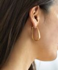 程よくボリューミィ―でぷっくりとした形がカワイイ、縦長なフープピアス。膨らみのある金属の内側をくり抜いたような形をしていますが、実は2つのドロップ型フープを重ねてこの形を出しています。◆『そのように見える』というところから商品名が付いています。◆2つのフープには微妙な段差があるため立体感があり、光り方が単調でないのもオシャレ。◆軽量な着け心地◆色々な服に合いやすいシンプルなデザイン◆ポスト(針)とキャッチが本体と一体になった、キャッチを無くさない便利なタイプ。見た目もスッキリとして◎【お手入れについて】※ピアスは帰宅したら外し、ハンドソープで手を洗うついでに一緒に軽く洗ってしまうのが◎ 付着した皮脂や汗が落ちて酸化を遅らせ、色味やカラーがキレイに保てます。※洗ったあとはティッシュで軽く水気を吸い取り、タオル等の上に置いて自然乾燥させて、乾いたらしまいます。※着用しないときはチャック付きポリ袋などに入れて、なるべく空気に触れさせないことで質感の良さが長持ちします。※入浴時、スポーツ時、就寝時には外してください。質感が劣化し、破損の原因になります。【SNS用ハッシュタグ】#234662くりぬきドロップフープピアス(このハッシュタグでInstagramなどSNS内で検索をしますと、こちらをお持ちのお客様のご投稿があれば、簡単に見つけてご覧いただくことができます)