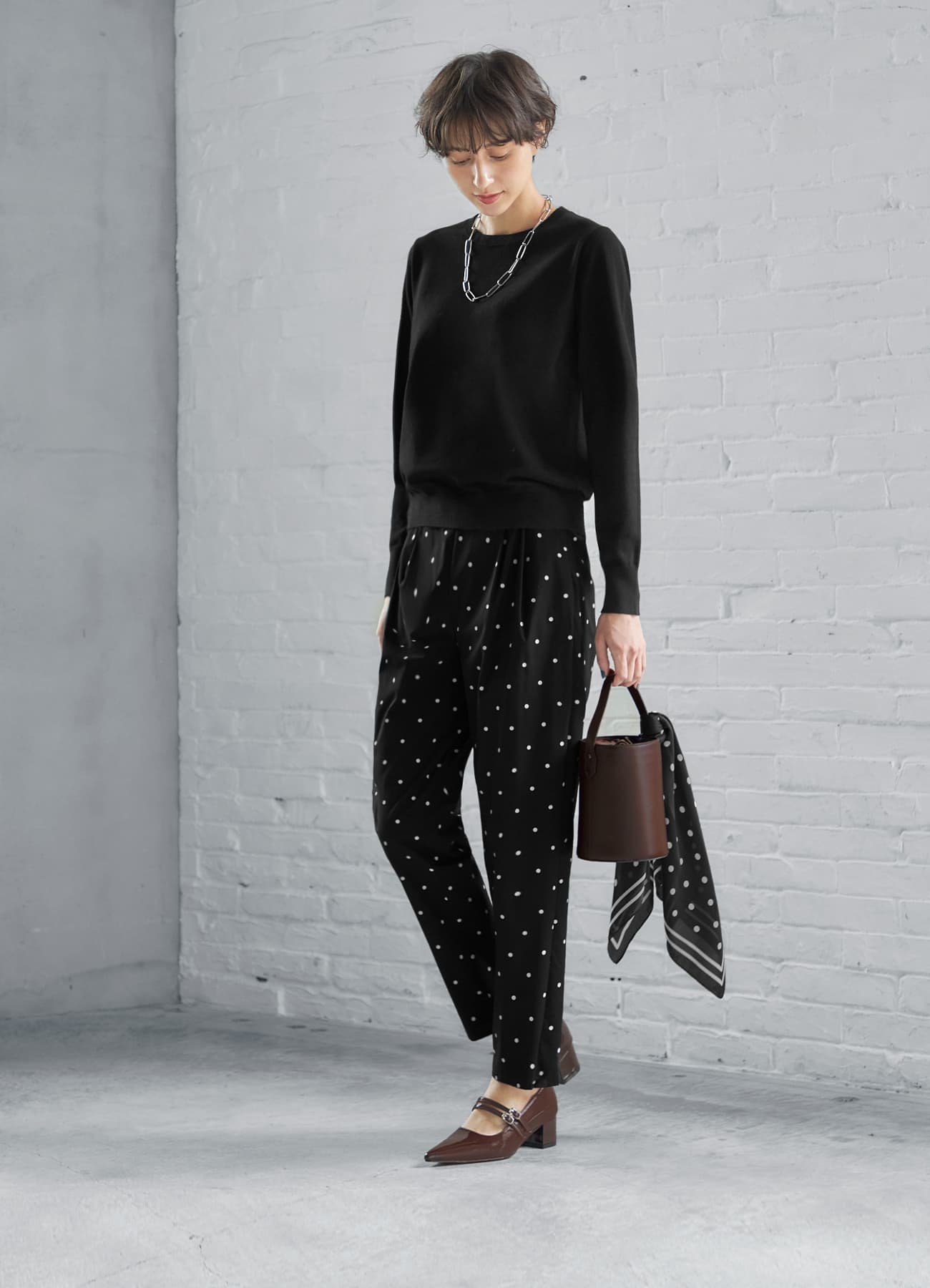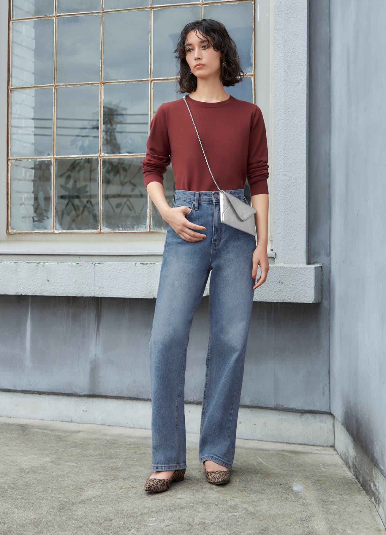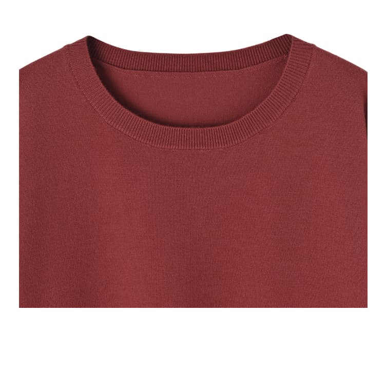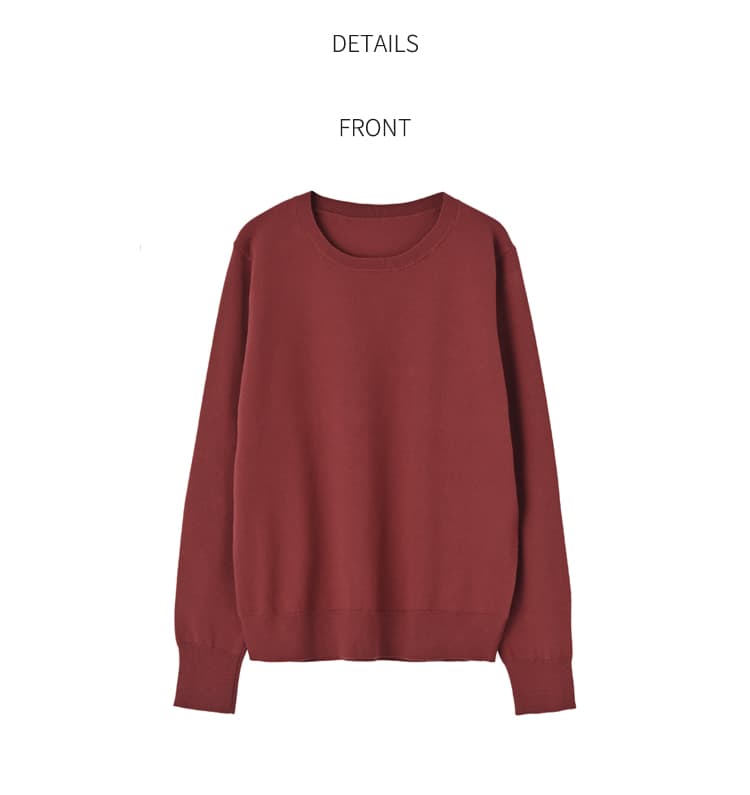 あの名作5分袖ニットが長袖に!好みで選べる3つのネックデザイン何年にもわたりロングセラーを続けていた名作5分袖ニットを、長袖にアレンジしてみたシリーズ。着心地の良さやスッキリ感、サイズ感や着回し力はそのままに、冬季まで使える長袖タイプになっています。※今年は5分袖タイプの販売はございません。◆身体にフィットはしない絶妙なゆとりを付けながら、余分なモタつきは生じないよう設計したジャストサイズニットトップス。◆チクチク感をまったく感じないスムースな肌触り。どこかモッチリ&しっとりとした、なめらかなタッチのハイゲージ編み。◆着る人の年代や系統を選ばず、あらゆる着こなしに使えるシンプルなデザイン。ジャケットのインナーに使用したり、等のレイヤードにも使いやすいサイズ感。こちらはクルーネックタイプの販売ページです。同じ素材、デザイン、サイズ感でハイネックタイプとVネックタイプもご用意しております。【商品の特徴】◆着用時期:秋冬◆サイズ感:フィットしすぎない、絶妙なゆとりがあるサイズ感◆丈感:骨盤に掛かる程度の丈感◆シルエット:ボトムスとのバランスが取りやすいコンパクト風シルエット◆首元のデザイン:詰まりすぎていないクルーネック◆厚み:薄すぎず、ほんのりハリのある厚さ◆柔らかさ:柔らかい◆着用ジワ:できにくい◆毛羽立ち:摩擦の集中と着用頻度により、たまにおきることがあります(できた場合は毛玉取りクリーナー等でご対処ください)◆伸縮性:あり◆光沢感:なし◆透け感:ホワイトはややあり(インナーはベージュ系などの響きにくいお色がオススメです)◆ボタン:なし◆ファスナー:なし◆ポケット:なし◆裏地:なし◆手洗い:可能◆アイロン:可能(低アイロン)【お色について】◆ブラック:通常の定番ブラックです。◆マホガニー:赤の中にブラウンを入れて、深みと雰囲気を出したオシャレなお色です。◆ホワイト:真っ白ではなく、柔らかな優しさを入れた着やすいホワイトです。【SNS用ハッシュタグ】#234951ピッタリしない長袖クルーネックニット(このハッシュタグでInstagramなどSNS内で検索をしますと、こちらをお持ちのお客様のご投稿があれば、簡単に見つけてご覧いただくことができます)