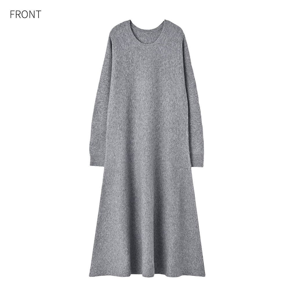 シンプルなのに華があり、暖かい。ふんわりニットの美ラインワンピース。ふんわりと暖かな質感で仕上げた、シルエット自慢のニットワンピース。これまでニットワンピースというと、ストンとしたシルエットのしっかり硬め生地で仕上げることが多かったSTYLE DELIですが、今回は柔らかさのある質感で、ウエストにシェイプをかけたフレアラインになっているところが新鮮です。全体的にはシンプルなので、ジャケット合わせやジレ合わせで重ね着をしたり、付け襟やスカーフ合わせで雰囲気を変えたり…とアレンジも楽しめるデザイン。お気に入りのブーツと合わせて冬を暖かく過ごせるワンピースです。◆ここにも注目◆全体的なフォルムにXラインのシェイプはかけていますが、身体にピッタリとすることはないように設計。ふんわり柔らかな素材で身体から絶妙に浮き、下腹のぽっこりや腰張りが気になりにくいよう仕上げています。※こちらは再公開商品です。過去のインスタライブ紹介は2023年9/5および9/7のアーカイブ動画でご覧いただけます。【お知らせ事項/丈感と丈伸びについて】こちらのワンピースは平置き採寸時の着丈は割と短めですが、着用すると13-15cm前後長くなる編み組織となっています。それを踏まえて着丈を設定しておりますので、通常のワンピース着丈の概念とは異なる視点でお考えください。◆デザインとしての想定は、『ふくらはぎが完全に隠れるロング丈』となっており、くるぶしまではいかない程度の長さでお作りしています。◆01サイズ=161cm以下の方を想定しています。着丈123cm前後イメージ。◆02サイズ=162cm以上の方を想定しています。着丈128cm前後イメージ。◆ハンガー掛けで保管をしますと、丈感のみならず肩や袖丈にも影響を与えますので、保管の方法にご配慮ください(※干す際も同様です)。◆丈感の伸び具合には、どのように着るかや着用頻度、体型、扱い方により大きく個人差が生じます。ゆる編みのニット製品(とくにワンピース)が等しく持つ特性となりますので、予めご了承をお願いいたします(※丈伸びに関しましては一部ニット類の通常特性となりますため、恐れ入りますが免責とさせていただきます)。【商品の特徴】◆着用時期:夏以外◆サイズ感:適度なゆとりのあるサイズ感◆丈感:足首下部が少し見える程度の丈感が基準◆シルエット:裾に向かって広がるフレアシルエット◆タック:なし◆スリット:なし◆厚み:安心感のある厚み◆柔らかさ:柔らかい◆着用ジワ:できにくい◆毛羽立ち:できやすくはありませんが、摩擦の集中と着用頻度により、たまにおきることがあります(できた場合は毛玉取りクリーナー等でご対処ください)◆伸縮性:あり◆光沢感:なし◆透け感:なし◆ボタン:なし◆ファスナー:なし◆ベルトループ:なし◆ポケット:なし◆裏地:なし◆手洗い:可能◆裾上げ:不可◆アイロン:可能(低アイロン)◆ウエストゴム:なし【お色について】◆グレー:濃淡のグレー糸の中に、白い糸が混ざった暗くないグレー。【SNS用ハッシュタグ】#235090ふんわりフレアニットワンピース(このハッシュタグでInstagramなどSNS内で検索をしますと、こちらをお持ちのお客様のご投稿があれば、簡単に見つけてご覧いただくことができます)