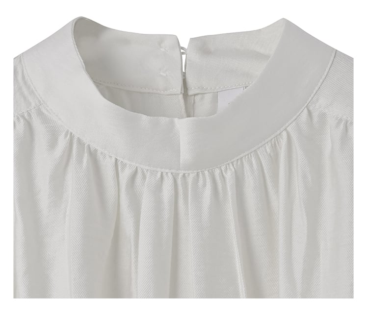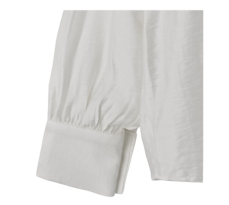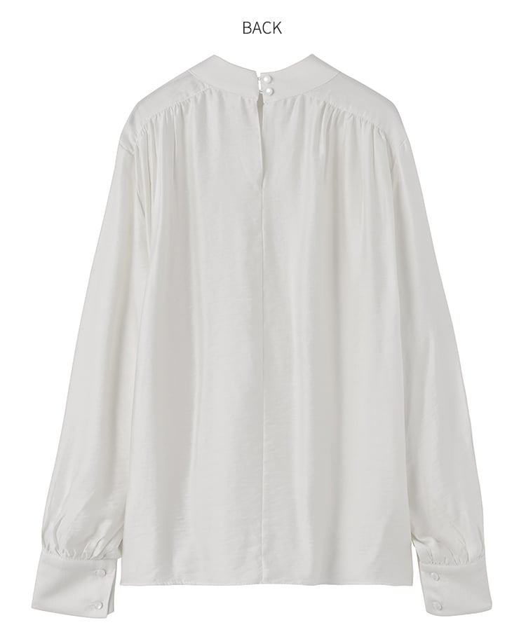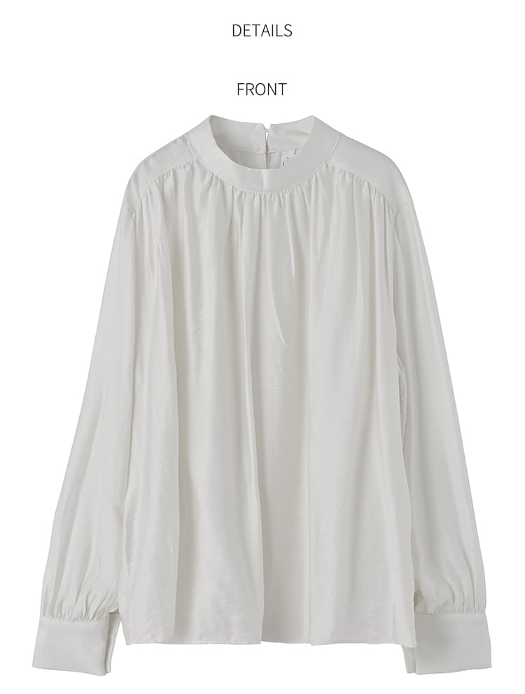 王道に素敵なブラウス界の定番デザイン艶めくしなやか質感のギャザーブラウスくったりとした質感がオシャレな、スタンドネックのギャザーデザインブラウス。一枚で着るのはもちろん、カーディガンやジャケットの中に着たり、サロペットやジャンパースカートの下に入れたりするのも可愛いです。丈感は長過ぎないため、裾をインせずともバランスがとりやすく、裾イン苦手派さんにも安心。スカートにもパンツにも合わせることができます。◆しなやかな生地の動きや、ほんのりとしたシアー感、艶のある微光沢性が女性らしい雰囲気。嫌味にならない色香が素敵なブラウスです。◆生地は薄手で柔らかなお素材感です。◆もともとシボ感(シワ加工)が入っているので、シワを気にせずにご着用いただけます。気になる場合は霧吹きで湿らせて、吊るしておけばすぐに伸びます。◆生地には透け感がありますが、インナーは透けてしまってぜんぜんおかしくありません。思いきり透けるという感じでもなく、なんとなく透けている感じですのでいやらしくなりません。◆冬場はヒートテックなどの長袖インナーを着て着用します。お好みなので着なくてもモチロン構いません。背面の首開きからインナーが見えてもまったくおかしくはありませんので、気にせずにご着用ください。◆真冬はコレ一枚だと寒いので、上にカーディガンやジャケットを重ねて着るのが通常です。中に着るものとしても可愛いですし、脱いでもさらに可愛いので、一年中使い勝手が良いアイテムです(夏以外)。◆オケージョンコーデなどにも取り入れ可能な、華やかさがあるブラウスです。と同時に、サロペット合わせ等でカジュアルコーデにも使える振り幅の広さがあります。※こちらは再公開商品です。過去のインスタライブ紹介は2023年11/14および11/16のアーカイブ動画からご覧いただけます。【商品の特徴】◆着用時期:夏以外◆サイズ感:ゆったりとしたサイズ感◆丈感:下腹が隠れる程度の丈感◆シルエット:ふんわりとしたシルエット◆首元のデザイン:スタイリッシュなスタンドネック◆厚み:薄手◆柔らかさ:柔らかい◆着用ジワ:できにくいができても気にならない程度。スチーマーでサッと伸ばせる扱いやすい生地。◆毛羽立ち:できにくい◆伸縮性:なし◆光沢感:なし◆透け感:(それなりに下着にご配慮ください)◆ボタン:あり(首後ろ二ヶ所ボタン留め)◆ファスナー:なし◆ポケット:なし◆裏地:なし◆手洗い:可能◆アイロン:可能(低アイロン・当て布使用)【お色について】◆ブラウン:ほんのり赤味を含んだミルクチョコレートのような少し明るめのお色。◆ホワイト:真っ白すぎない程度に肌馴染み良く仕上げた、ホワイト系カラー。【SNS用ハッシュタグ】#235203微光沢シボ感ギャザーブラウス(このハッシュタグでInstagramなどSNS内で検索をしますと、こちらをお持ちのお様のご投稿があれば、簡単に見つけてご覧いただくことができます)