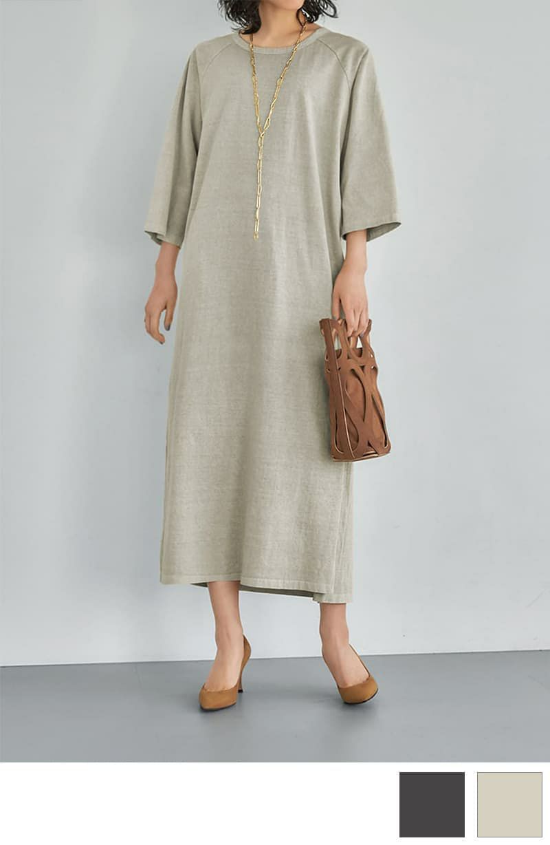 【LUXE】ヴィンテージ加工7分袖ワンピース