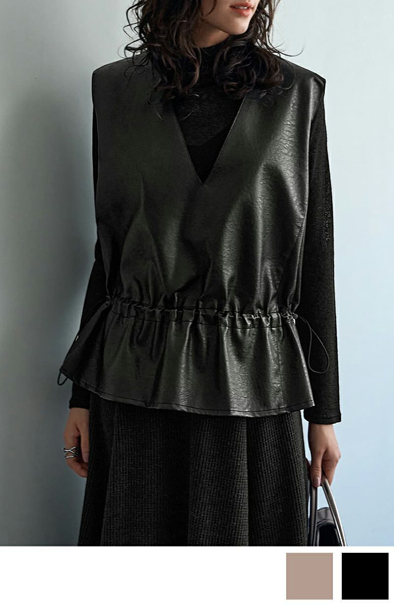 【LUXE】ペプラムフェイクレザーベスト