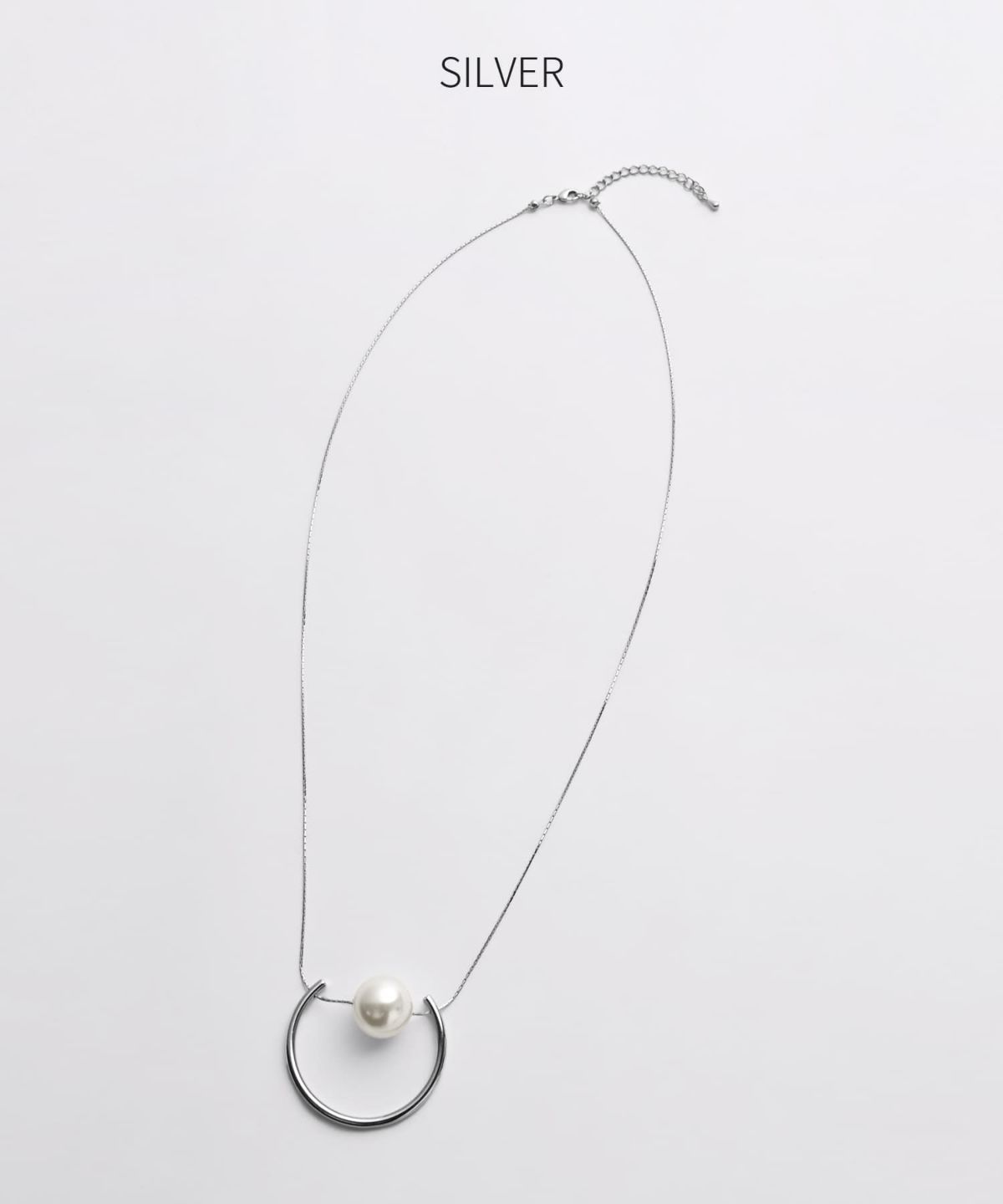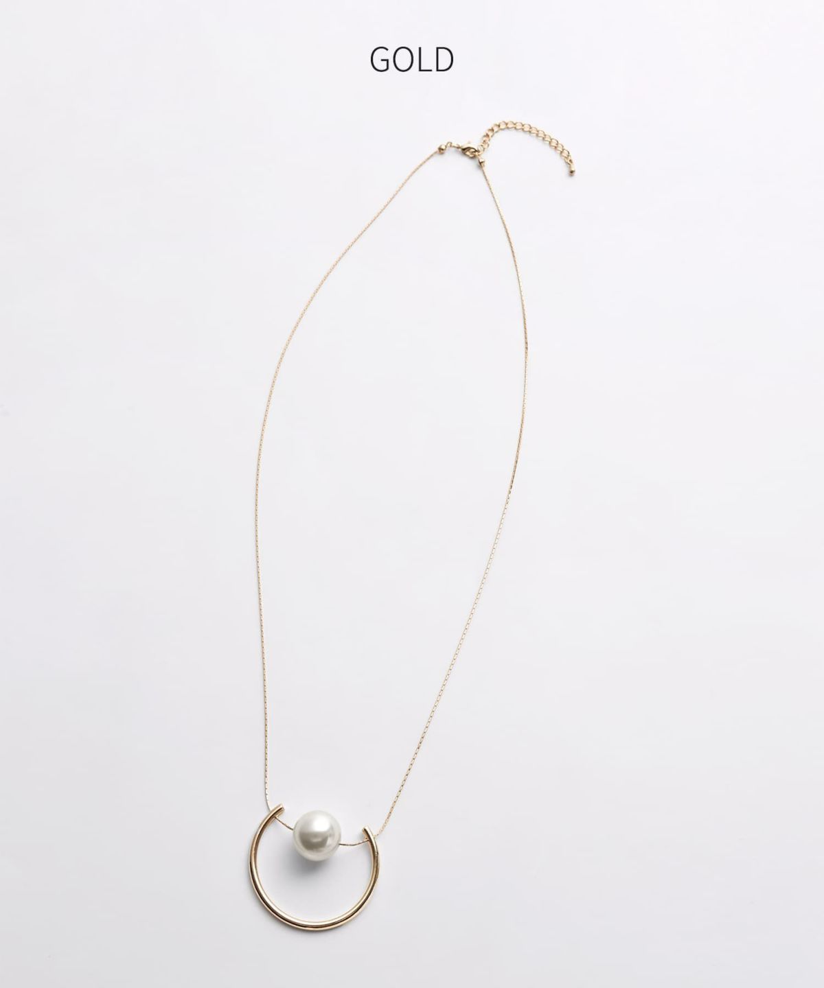 フレーム付きパールのロングネックレス