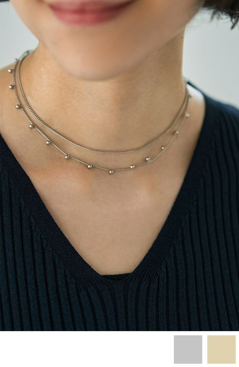 間隔ボールチェーン2連ネックレス