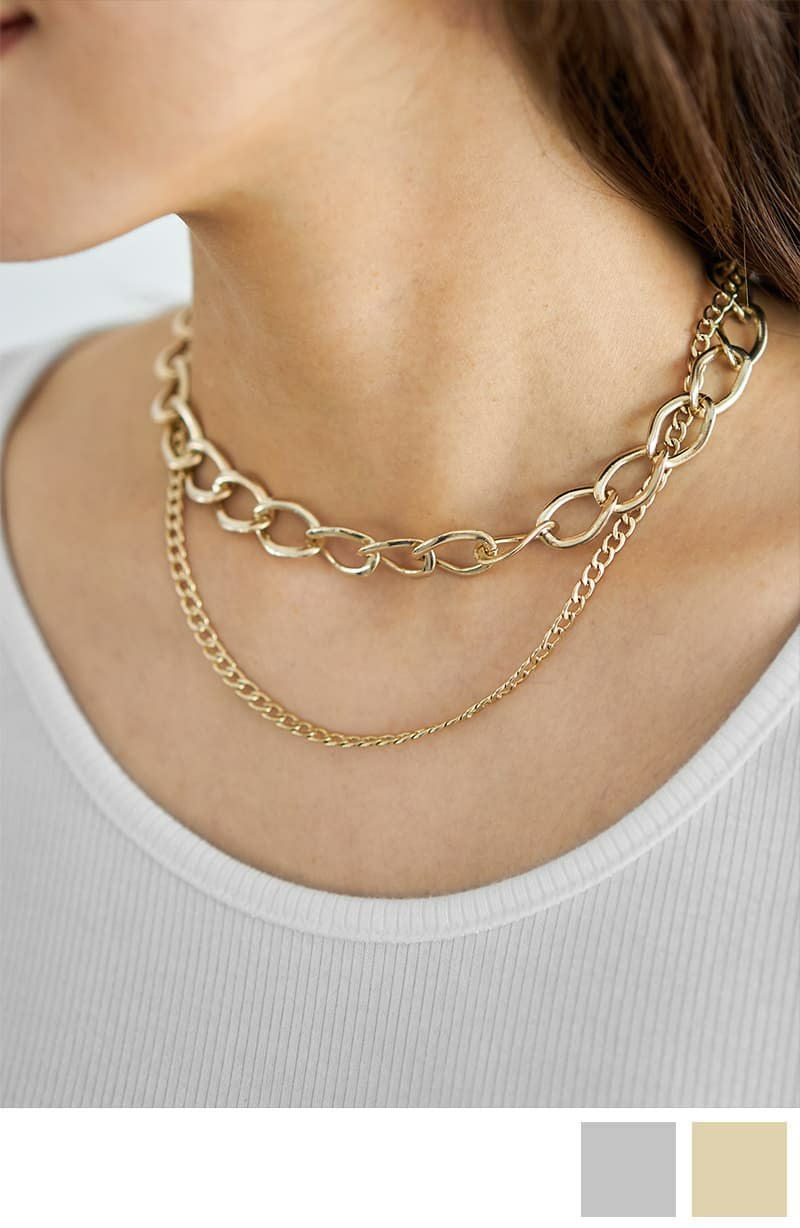 コントラスト2連チェーンネックレス