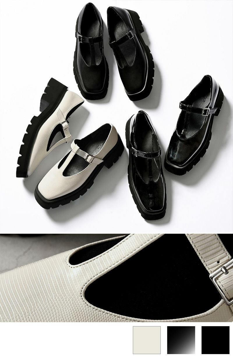 【Made in JAPAN】スクエアトゥフラットパンプス/スムースGWT