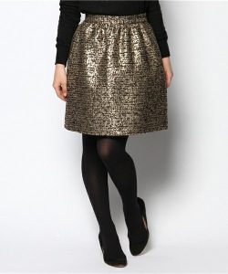 横に広いフレアスカートのシルエットとはケンカしてしまう関係にあります。ということで、スカートを合わせるならばペンシルスカートが適していますが、