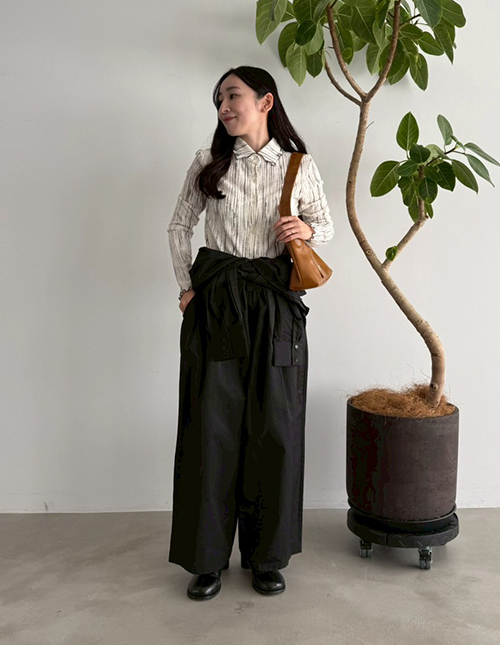 通称『おうち柄パンツ』は黒と合わせるのがやはり断トツで好き。ピリリと締まってカッコイイから、春夏は黒のノースリや半袖に変えて、ずっと黒合わせをしていたいです♪このトップスは2023年福袋限定のトップスです。