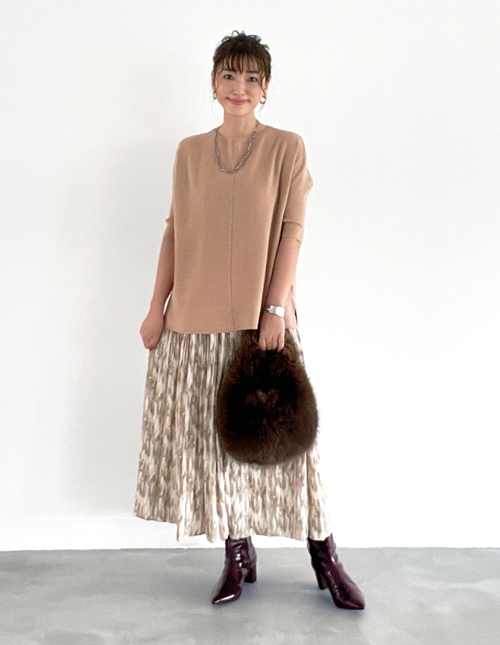 ゆったりリラックス感のあるワンピースにスニーカー合わせでカジュアルに^^ 明るさの中に深みのあるブルーがとっても綺麗で、顔色も華やかに明るく見せてくれるのも嬉しいポイントです♪
