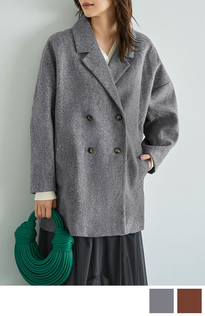 少しレンガ系の赤味を持つ発色で、老け見えせずに抜群のオシャレ感が出せるブラウンのPコート。