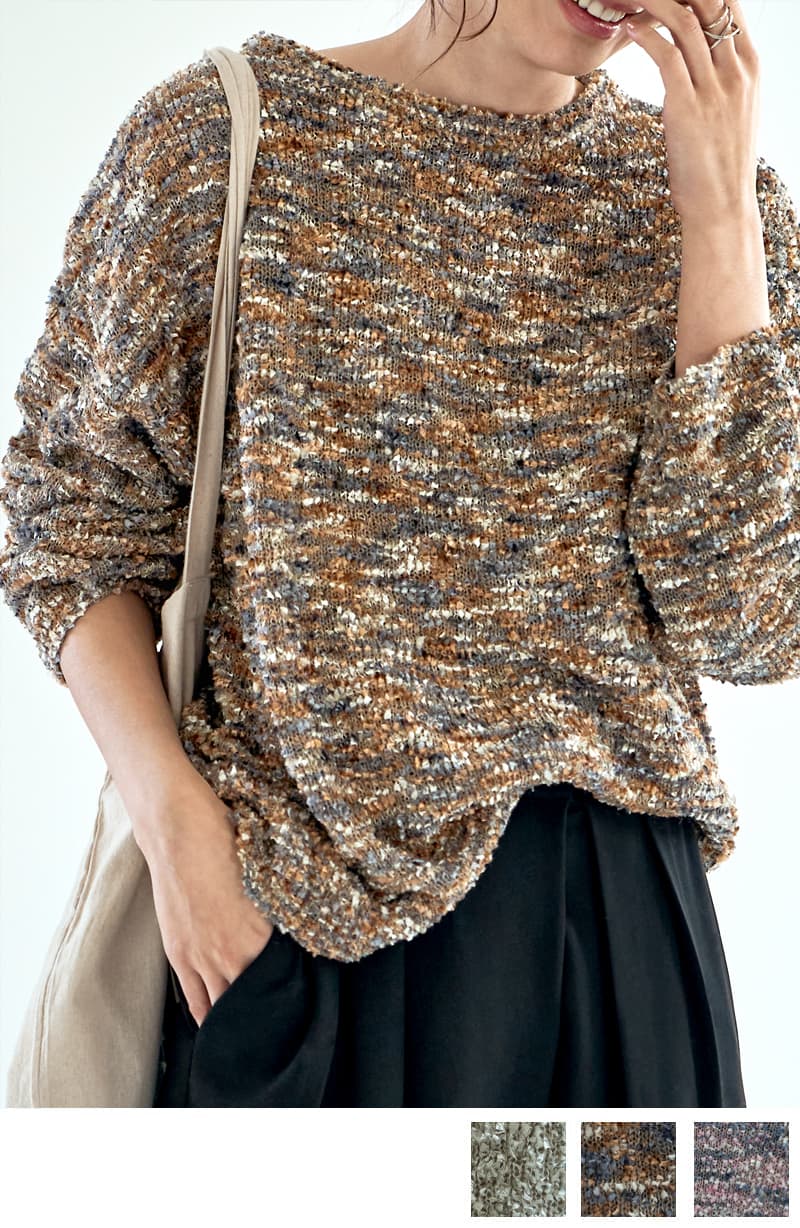 大人でも着れる、可愛くなりすぎないリボンヤーンニット。