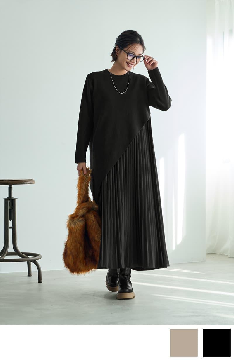 [同梱不可商品]ななめニットレイヤードワンピース【予約】