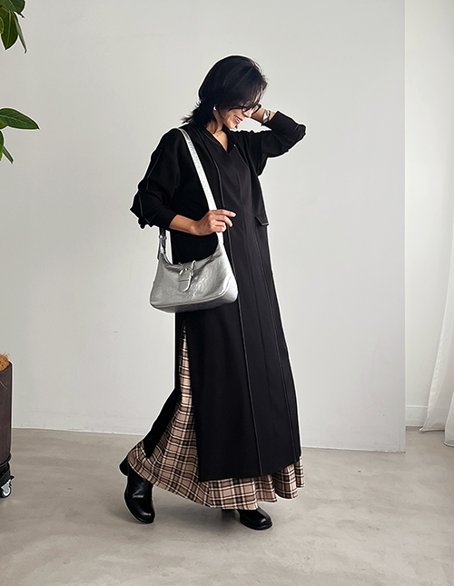 【BLK001】シアーグリッドオーバーシャツワンピース
