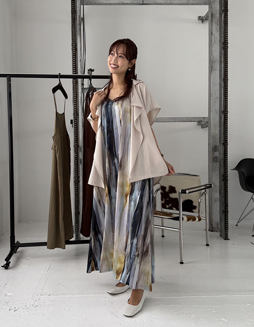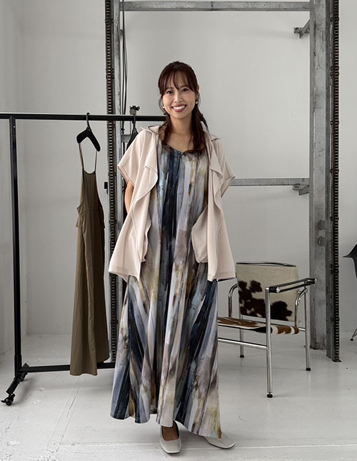 水彩ストライプ柄カットソーキャミワンピース