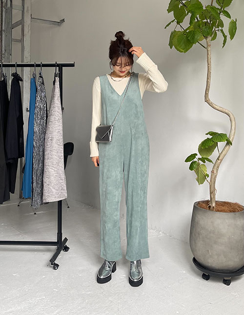 なかなか見ないミントグリーンの色味が可愛すぎるスエードタッチサロペット♡