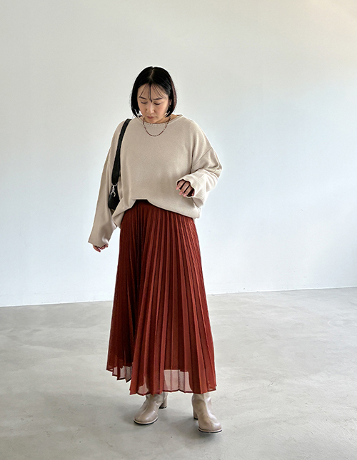 ブログコーデ。 過去に何度もおすすめさせていただいたことのある「3シーズンコットン混紡ニット」をまた改めてご紹介させていただきました。 スカートにもパンツにも合わせれて、スウェット感覚で気楽に使えるおすすめアイテム。