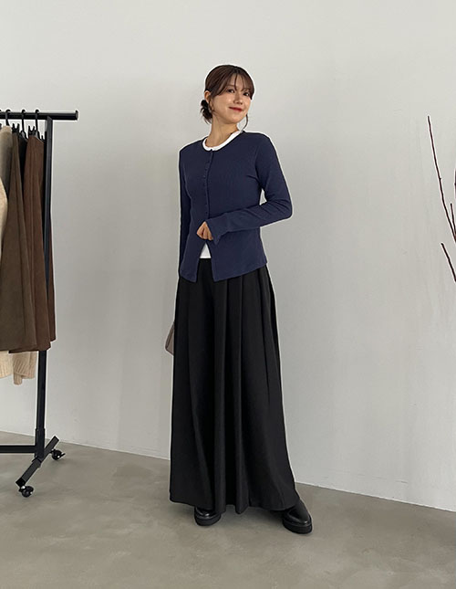 小さなボタンがたくさん並んだデザインのカットソートップスに タンクトップをインナーに仕込んだレイヤードコーデ♩ ネイビーは暗すぎず落ち着きのあるすごく素敵なお色です♡