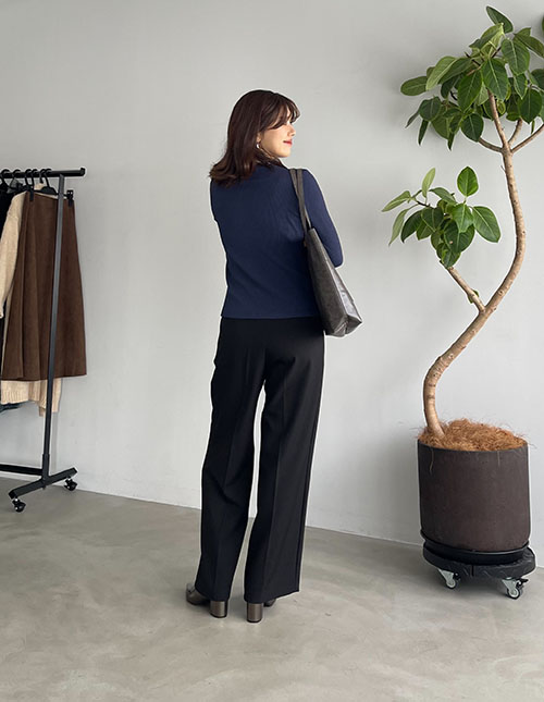 一枚でさらっと着用し大好きな中厚地タックパンツと合わせたシンプルコーデ◎