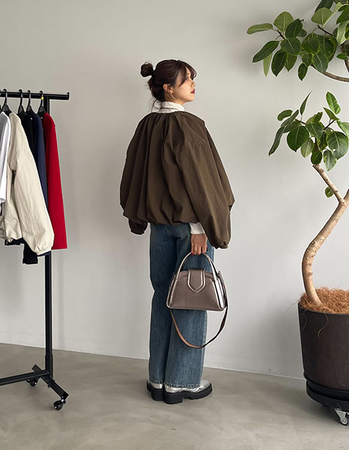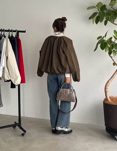 大人気のバルーンブルゾンのカーキにデニムパンツを合わせてみました♩