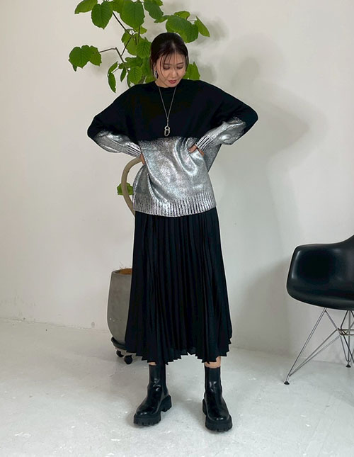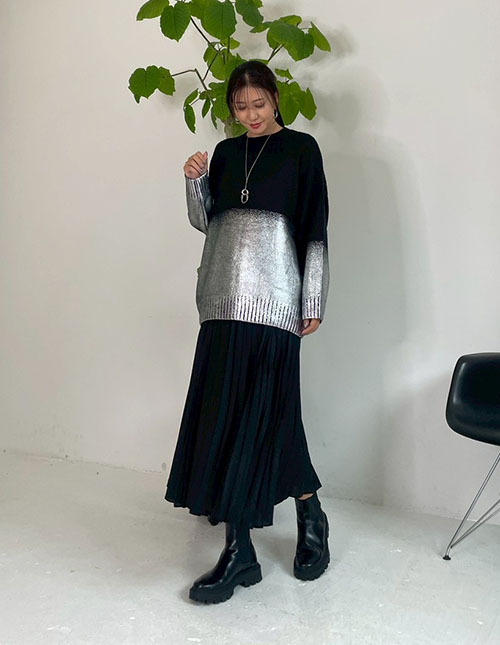 モード感を極めたい方におすすめ! オールブラックの中に箔プリントでポイントを出すことが出来ます。