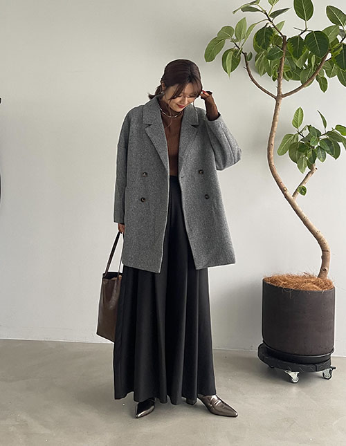グレー×ブラウンの秋色カラーにワイドパンツを合わせたコーデ◎ 夏から着用していたワイドパンツも秋冬を意識するカラーや素材を合わせるだけで グッと季節感が出てまた違う雰囲気を楽しめます♡オフィスカジュアルにもおすすめな秋コーデです♩