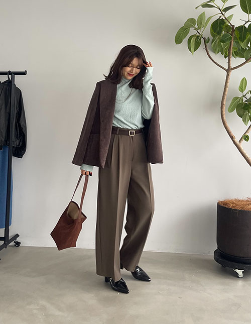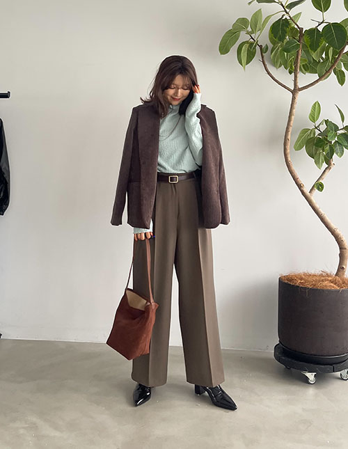 ご試着会でも大人気だったバブルシャーリングボトルネックトップス。 程良いゆとり感で、凹凸がオシャレな表面加工生地トップスです♩ 厚すぎず薄すぎずで今の時期にぴったりです◎どのカラーも合わせやすく ご試着会でもお色に悩まれる方も多かったです。シワにならないのも良いですよね♡ ジャケットは大人気のテーラードジャケット!!ベルベット調がやはりおしゃれ…♡