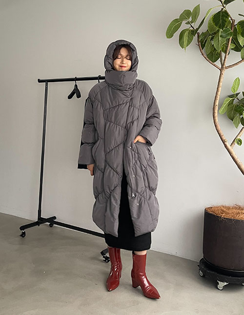 【LUXE】暖か軽量◆機能中綿ギャザーロングコート