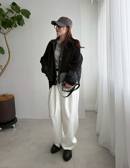 ブログコーデ 大好きなハイゲージクルーネックニットの新作4色全部着てみました。 ブラックは即ポチ済み!もう一色を悩み中です。