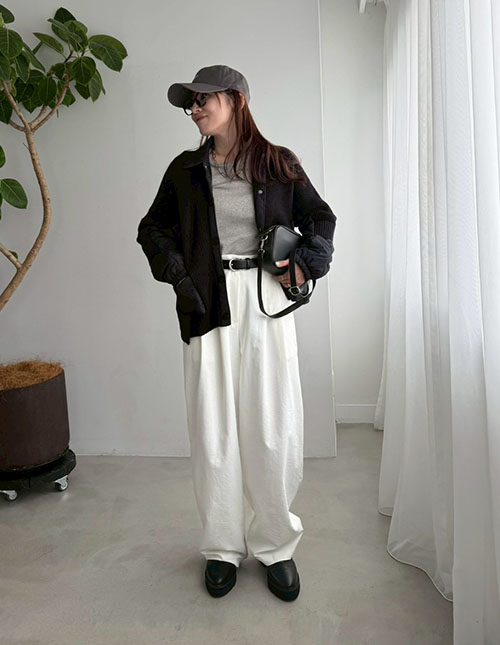 ニュアンスホワイト落ち感2タックワイドパンツ