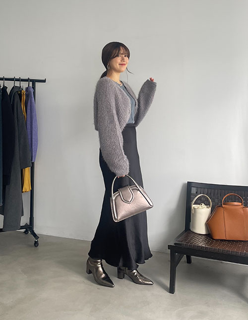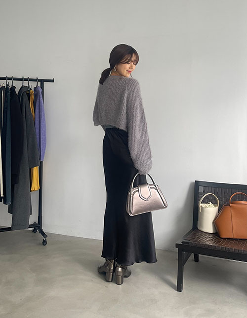 ふわふわニットのシャギーボレロにマーメイドのサテンスカートを合わせてみました♡