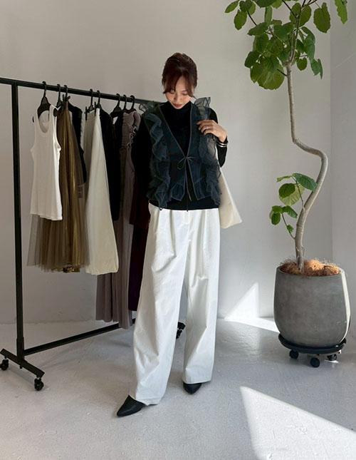 ニュアンスホワイト落ち感2タックワイドパンツ