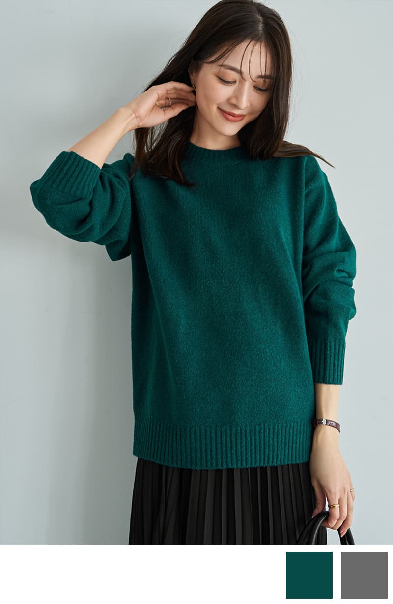 深みグリーンの上品ニットに、落ち感ワイドパンツで大人の抜け感スタイルです!