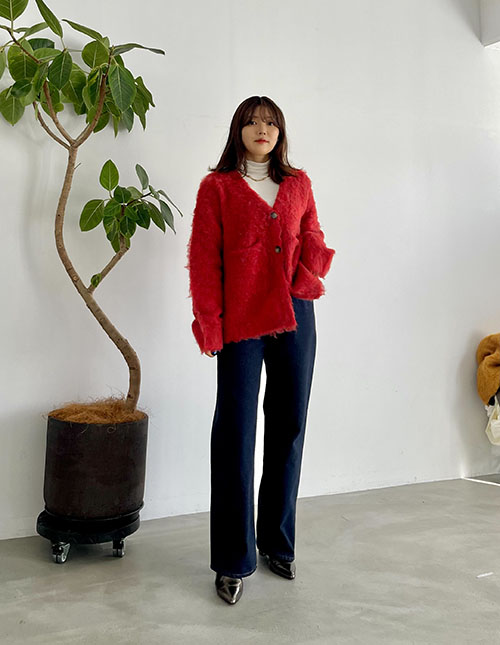 【LUXE】毛起こしブークレポケットカーディガン