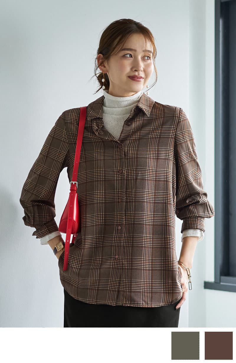 ふわふわニット、こちらはプルオーバータイプ♩写真だと見えづらいのですが、 首元からチェックのシャツの襟を出しているんです◎肉眼だと良いアクセントになりすごく好きなコーデになりました♡