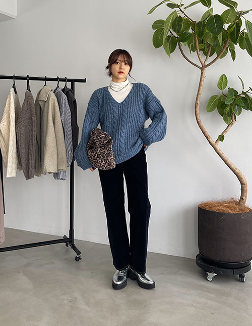 ざっくりケーブル編みVネックニットのブルー♡こちらは商品ページの詳細にもあるように