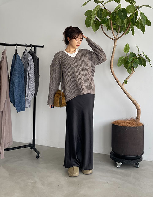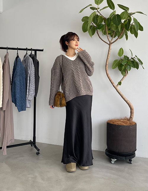 ざっくりケーブル編みVネックニットのモカグレー♡商品ページの詳細にもあるように