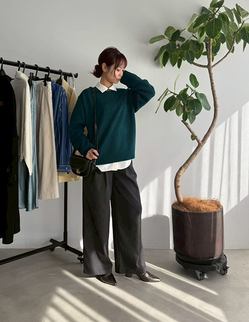 ウール混クルーネックニットプルオーバー