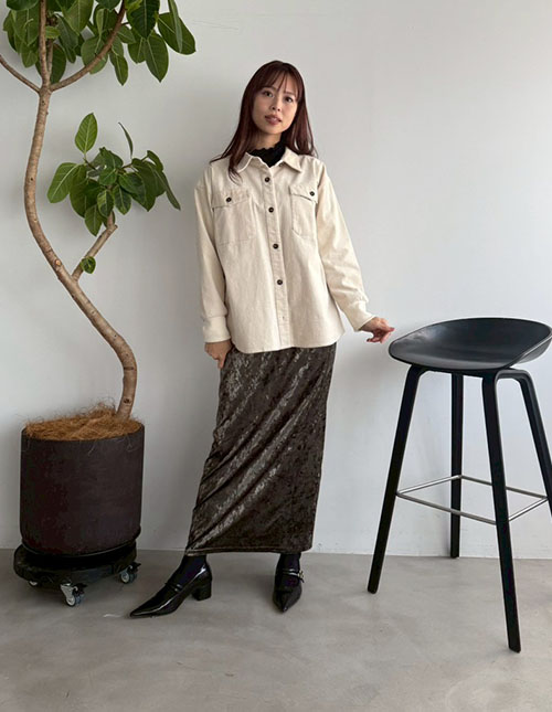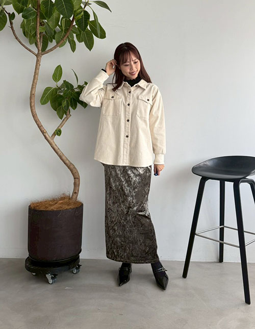 クラッシュベロア伸縮ストレートスカート