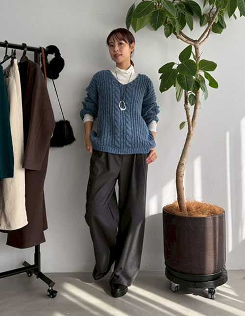 [同梱不可商品]とろみ薄リブルーズタートルトップス【一部予約】