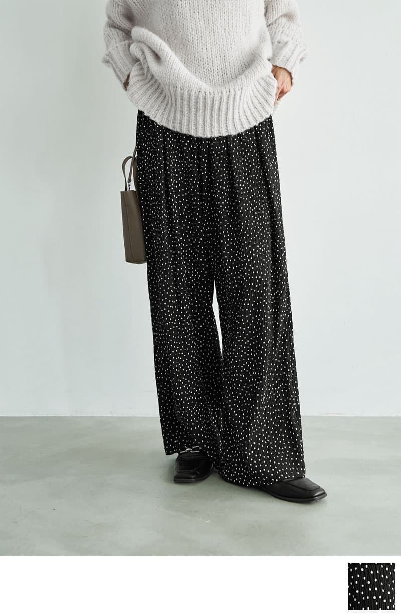 【LUXE】楊柳スモールドット柄プリーツパンツ