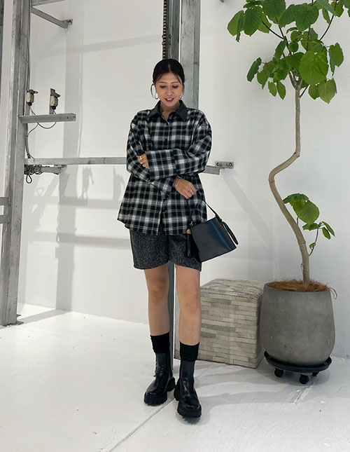 【BLK001】ツイードボックスタックハーフパンツ